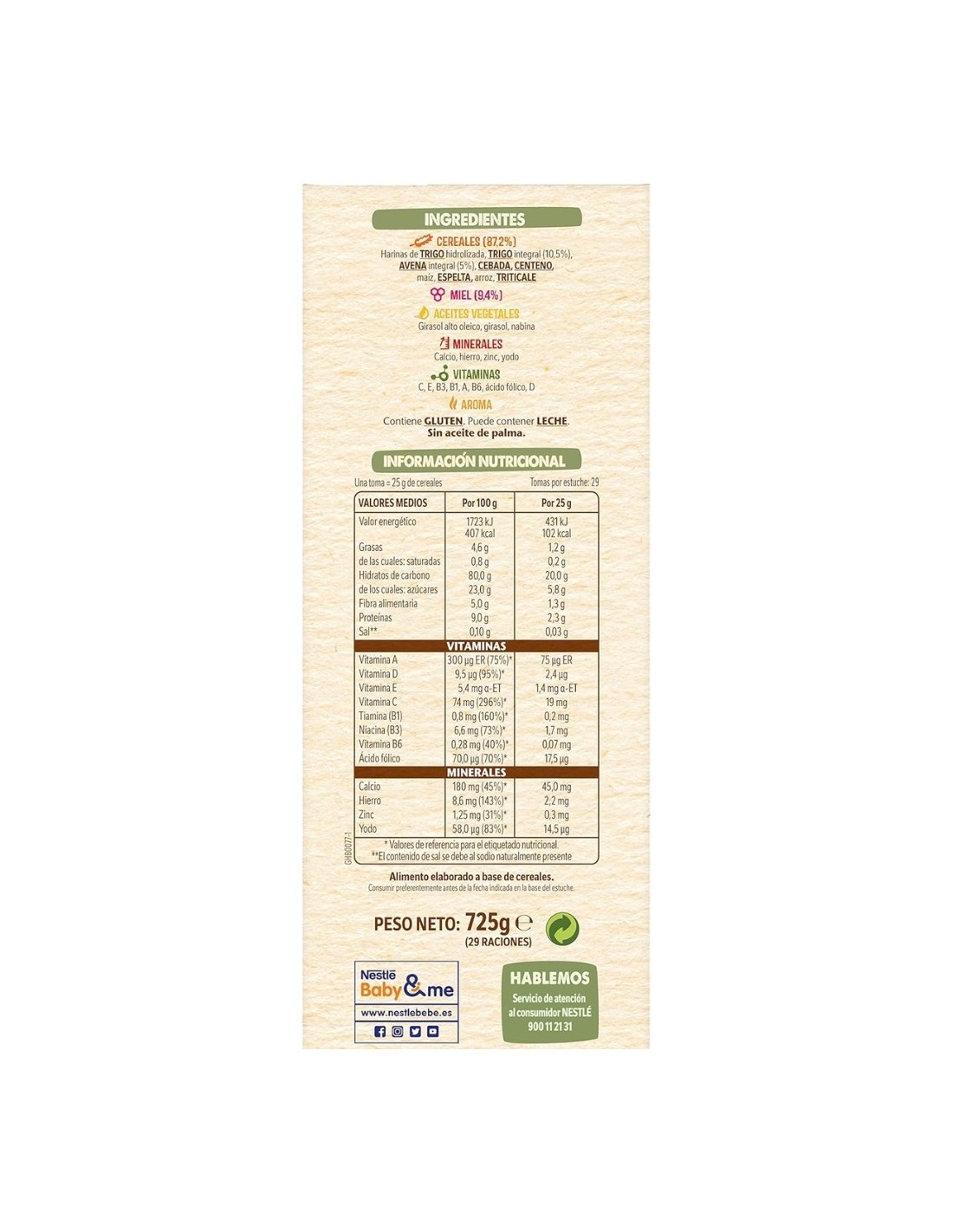 Contenido: Papilla instantánea en polvo con cereales y miel.