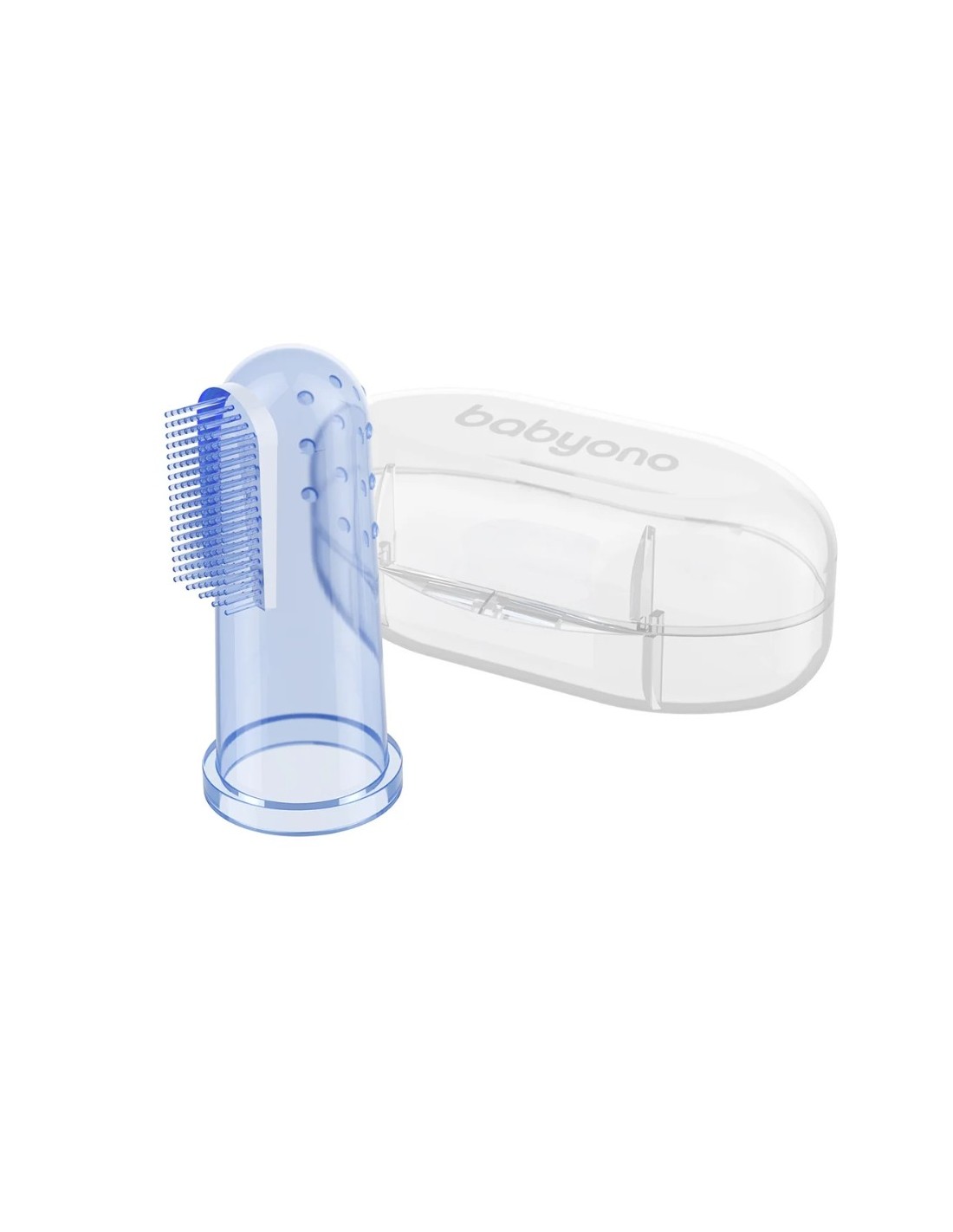 El cepillo dedal de silicona BabyOno con estuche es un accesorio de higiene diseñado para bebés desde los primeros meses de vida. Se coloca fácilmente en el dedo del adulto, permitiendo limpiar suavemente las encías y los primeros dientes del bebé mientras se masajea la boca, aliviando las molestias de la dentición. Incluye un práctico estuche higiénico que permite transportarlo y mantenerlo siempre limpio. Fabricado en silicona alimentaria hipoalergénica y libre de BPA, es seguro y duradero.