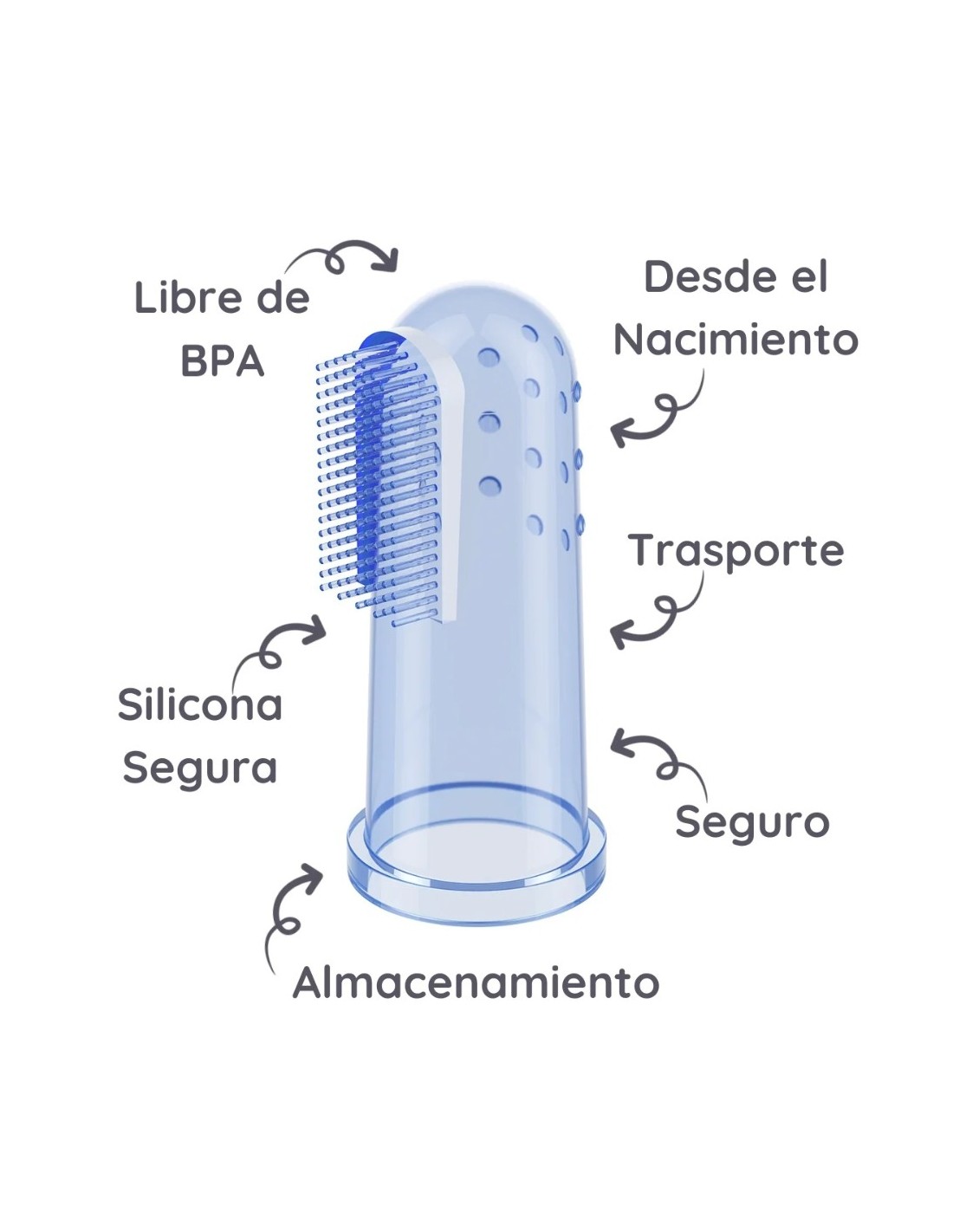 Se coloca en el dedo de un adulto y se utiliza para masajear suavemente las encías o limpiar los dientes con movimientos circulares.
