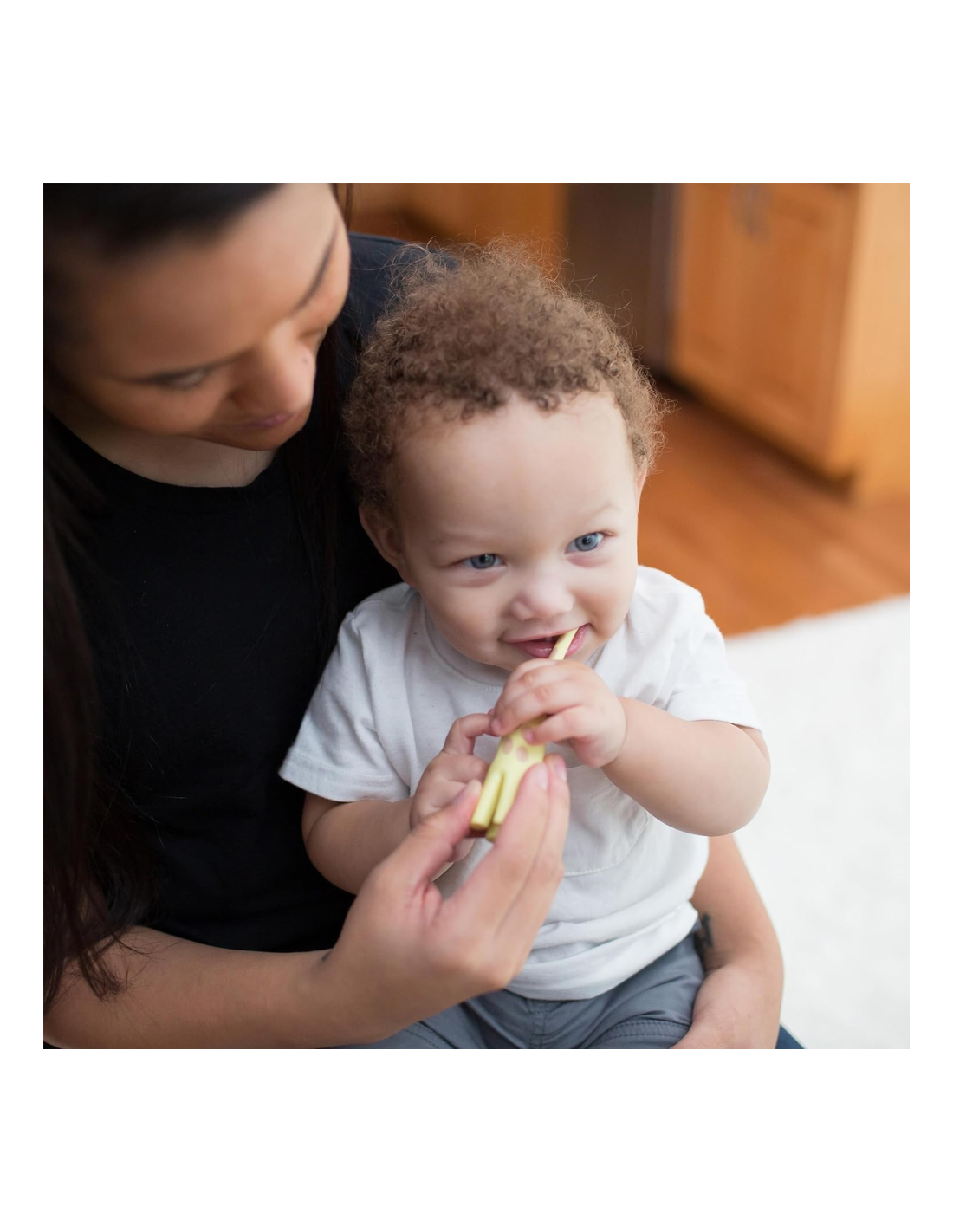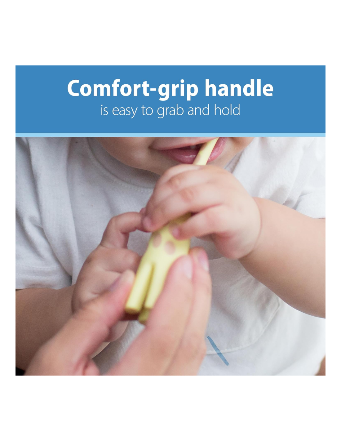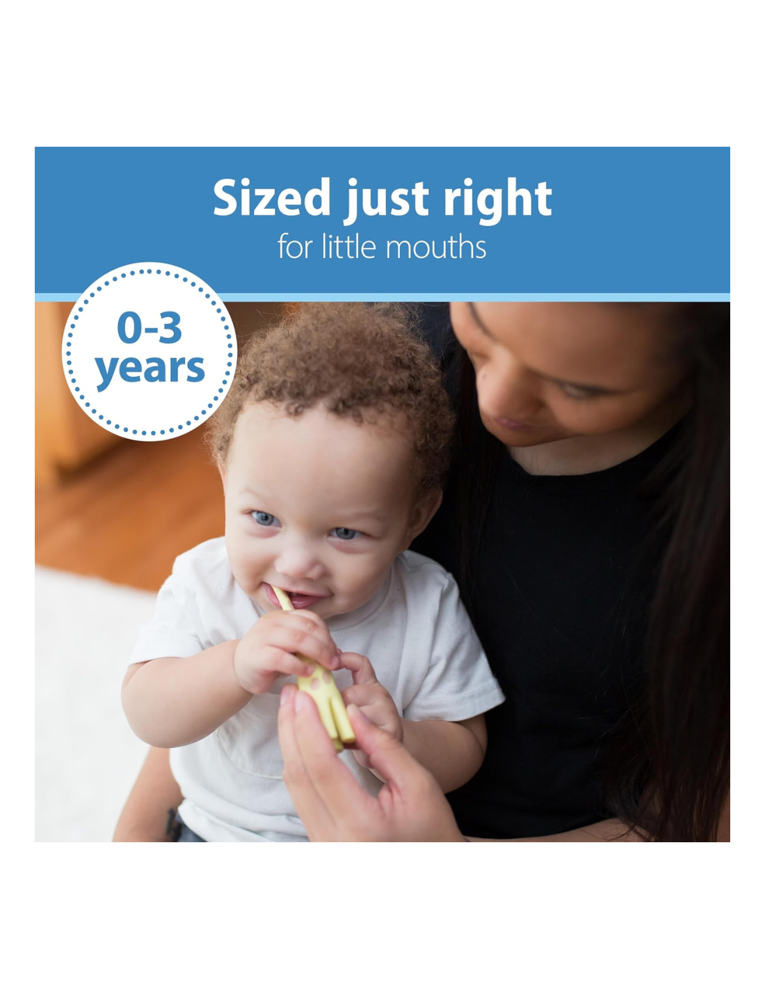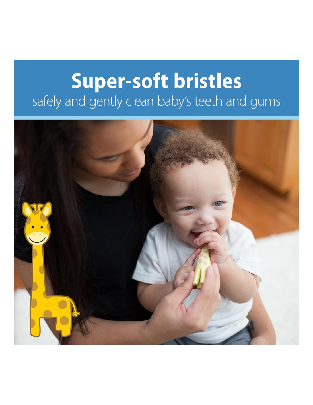 El Cepillo de Dientes Jirafa 12M+ Dr. Brown’s es el compañero ideal para iniciar al bebé en la higiene bucal de forma segura y divertida. Su original diseño en forma de jirafa, combinado con su mango ergonómico y sus cerdas de silicona extrasuaves, lo convierten en un cepillo perfecto para las primeras rutinas de cepillado.
