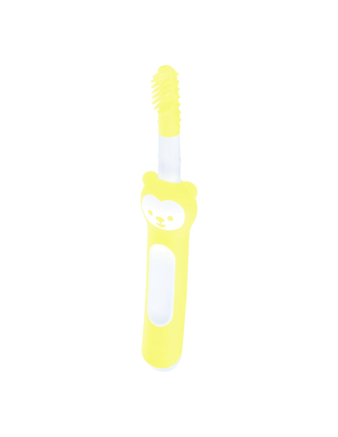 Mango ergonómico antideslizante para el adulto, con tope de seguridad para controlar la profundidad. Peso ligero, fácil de manejar y apto para limpieza y desinfección habitual. Libre de BPA/BPS. Ideal como paso previo al cepillado con pasta.