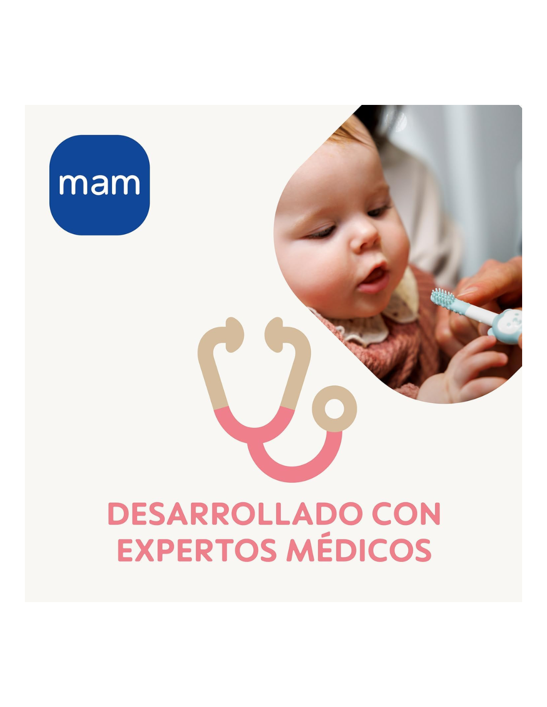 El Cepillo masajeador de encías MAM Baby (desde 3 meses) alivia las molestias de la dentición temprana y ayuda a establecer una rutina de higiene bucal desde el inicio. Su cabezal suave con texturas de masaje (microceldas y filamentos flexibles) estimula encías y paladar sin dañar tejidos delicados.