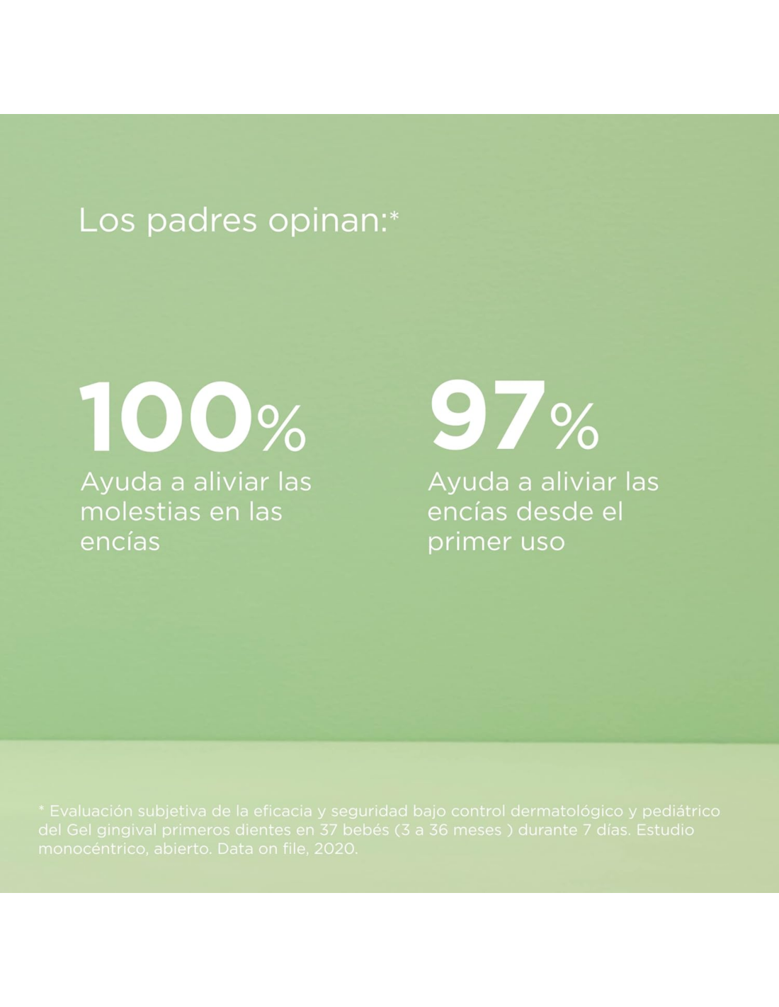 Su textura en gel, de rápida absorción y sabor neutro, proporciona una sensación inmediata de alivio y frescor, mientras forma una película protectora que ayuda a mantener las encías hidratadas y confortables. Sin alcohol, sin azúcar, sin anestésicos locales y sin perfume, este gel ha sido testado bajo control pediátrico y odontológico, garantizando su máxima tolerancia incluso en recién nacidos.