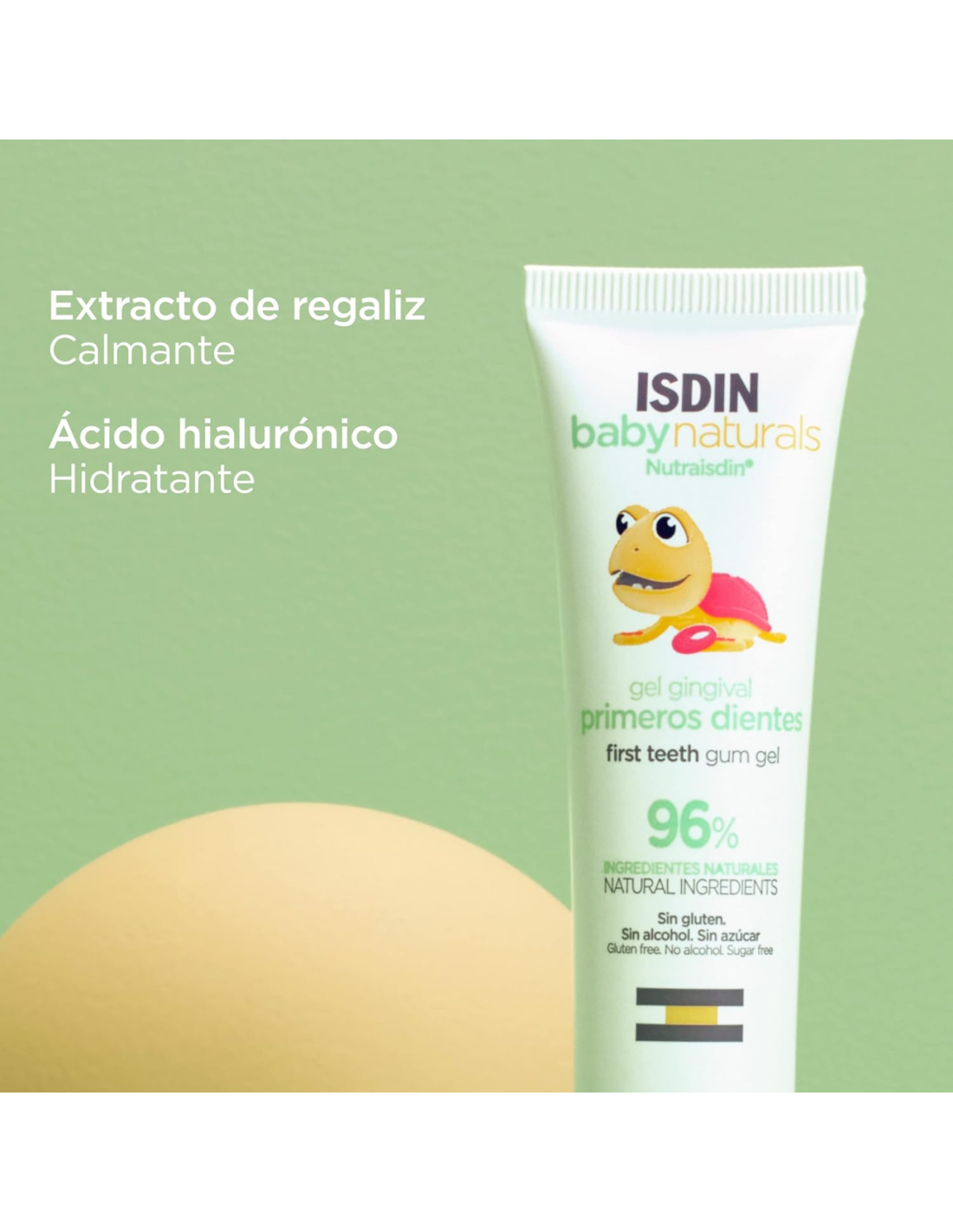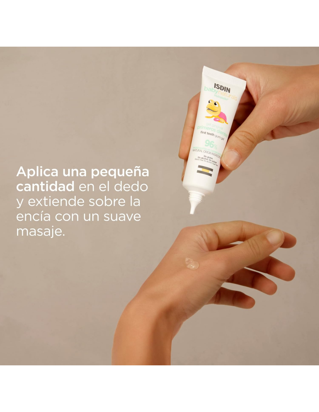 El Babynaturals Gel Gingival “Mis Primeros Dientes” ISDIN está especialmente formulado para calmar, refrescar y proteger las encías del bebé durante la aparición de los primeros dientes. Su fórmula suave, con 96% de ingredientes naturales, combina extracto de caléndula, pantenol, xilitol y aloe vera, que ayudan a reducir la irritación, el enrojecimiento y las molestias asociadas a la dentición.