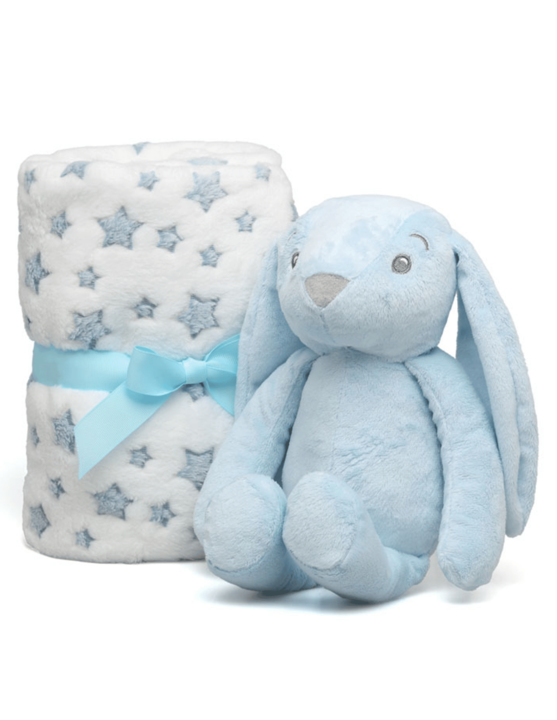 - Mantita polar azul, cálida y respetuosa con la piel del bebé.