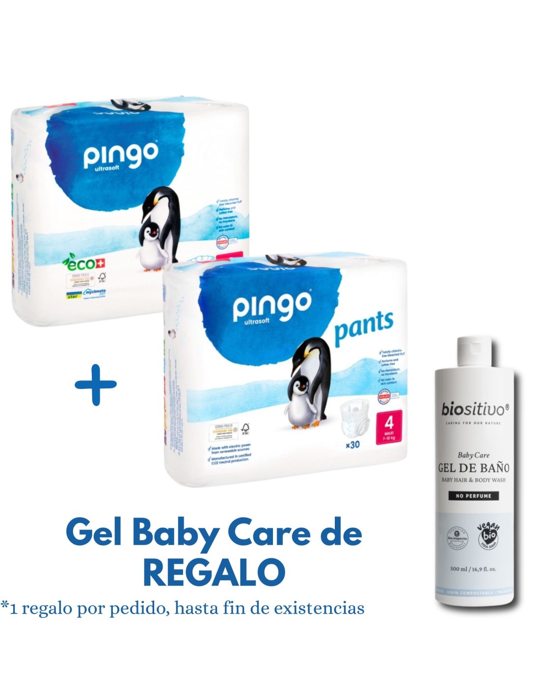 El Pack Pingo talla 4 combina la eficacia y suavidad de los pañales ecológicos Pingo (40 uds) con la comodidad y libertad de movimiento de los Pingo Pants talla 4 (30 uds). Está especialmente diseñado para bebés de entre 7 y 18 kg que empiezan a moverse con más autonomía.