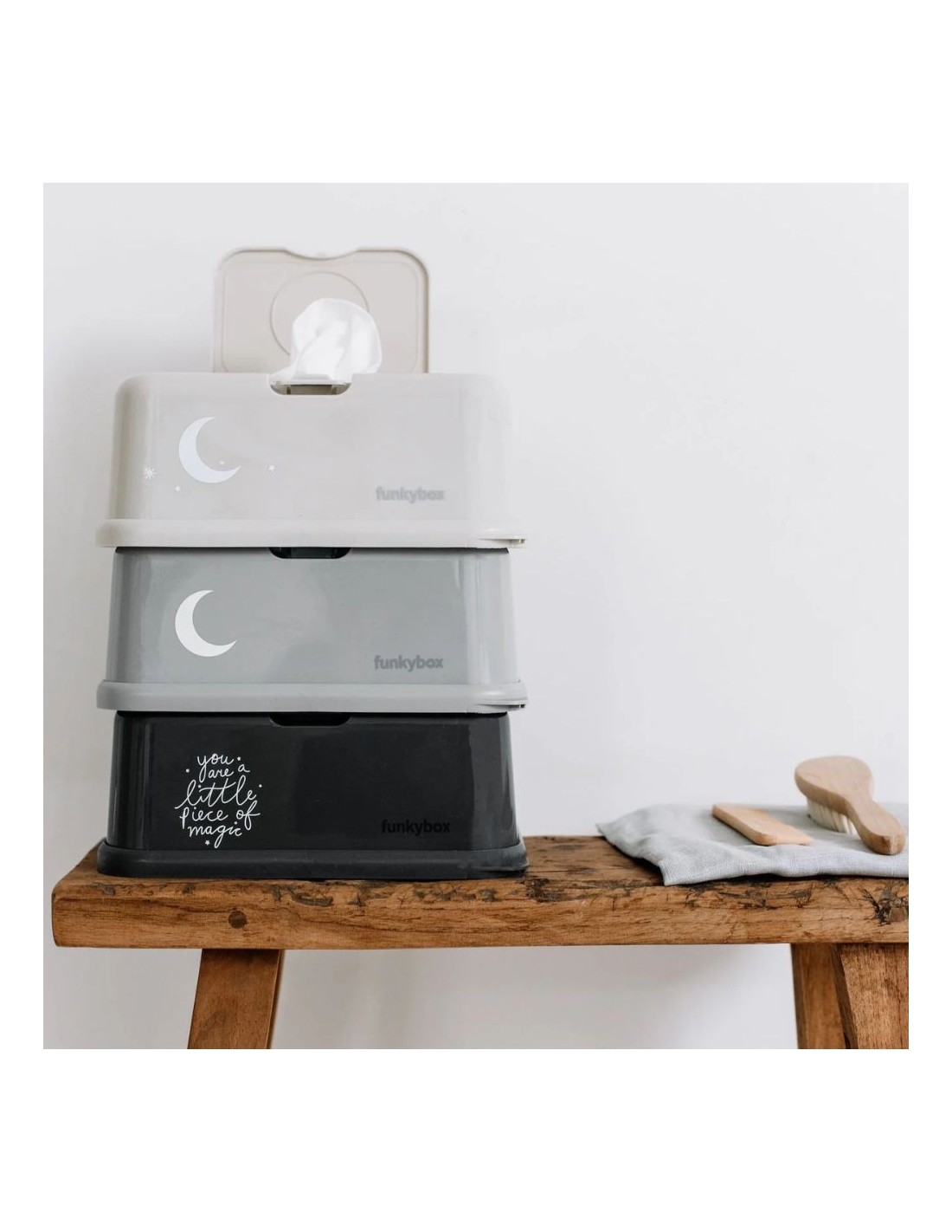 - Funkybox tiene la altura y anchura perfecta para introducir las toallitas higiénicas estándar.