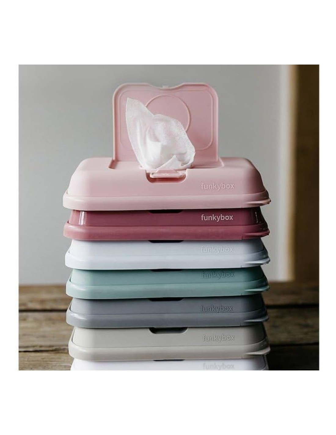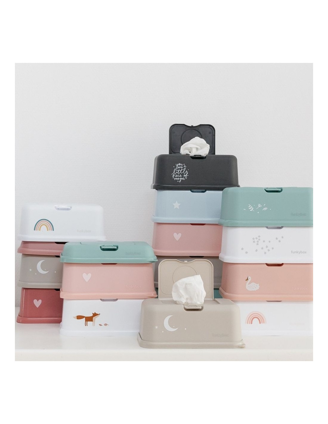 - Funkybox tiene la altura y anchura perfecta para introducir las toallitas higiénicas estándar.