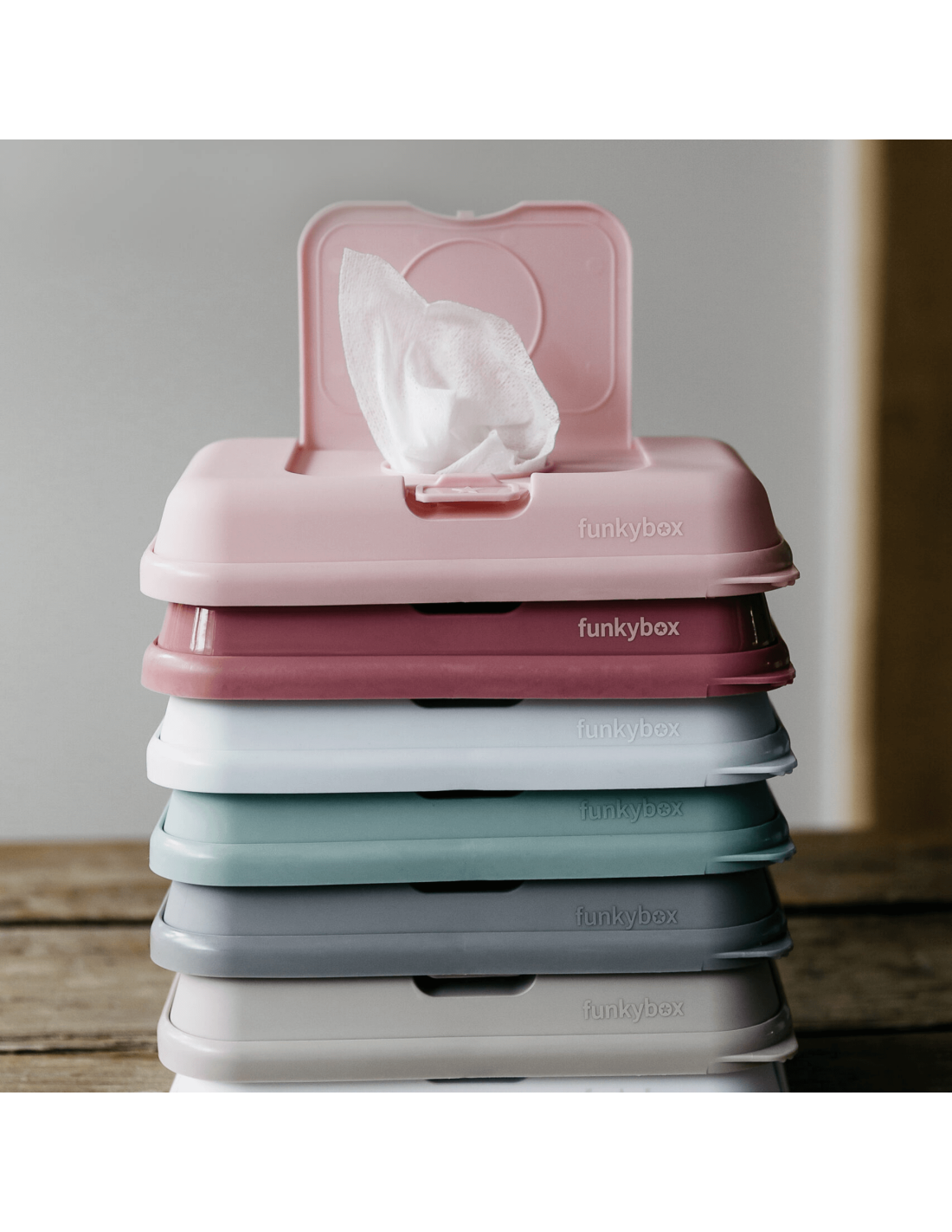 - Funkybox tiene la altura y anchura perfecta para introducir las toallitas higiénicas estándar.