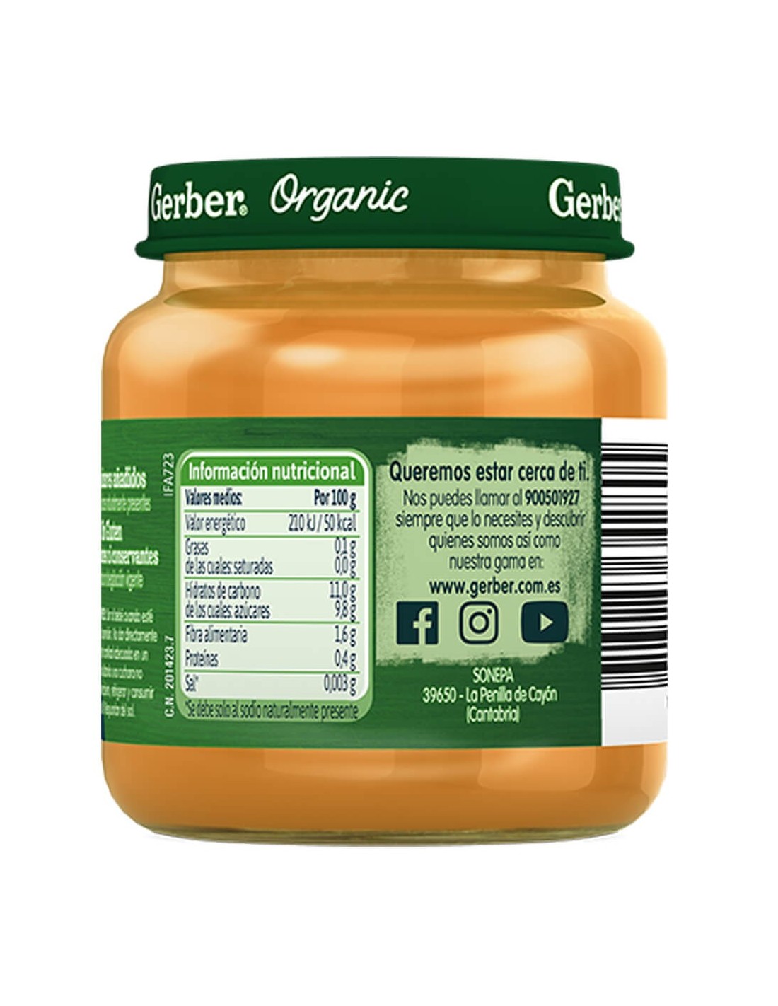 No, el tarrito puré de Gerber no contiene azúcar añadida. Su sabor dulce proviene exclusivamente de las frutas orgánicas, lo que permite una alimentación natural para el bebé.