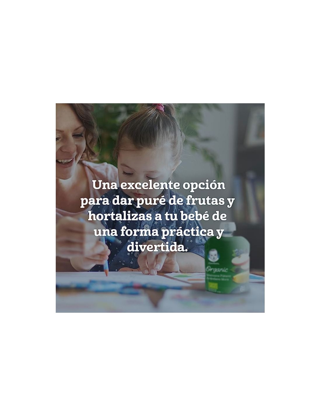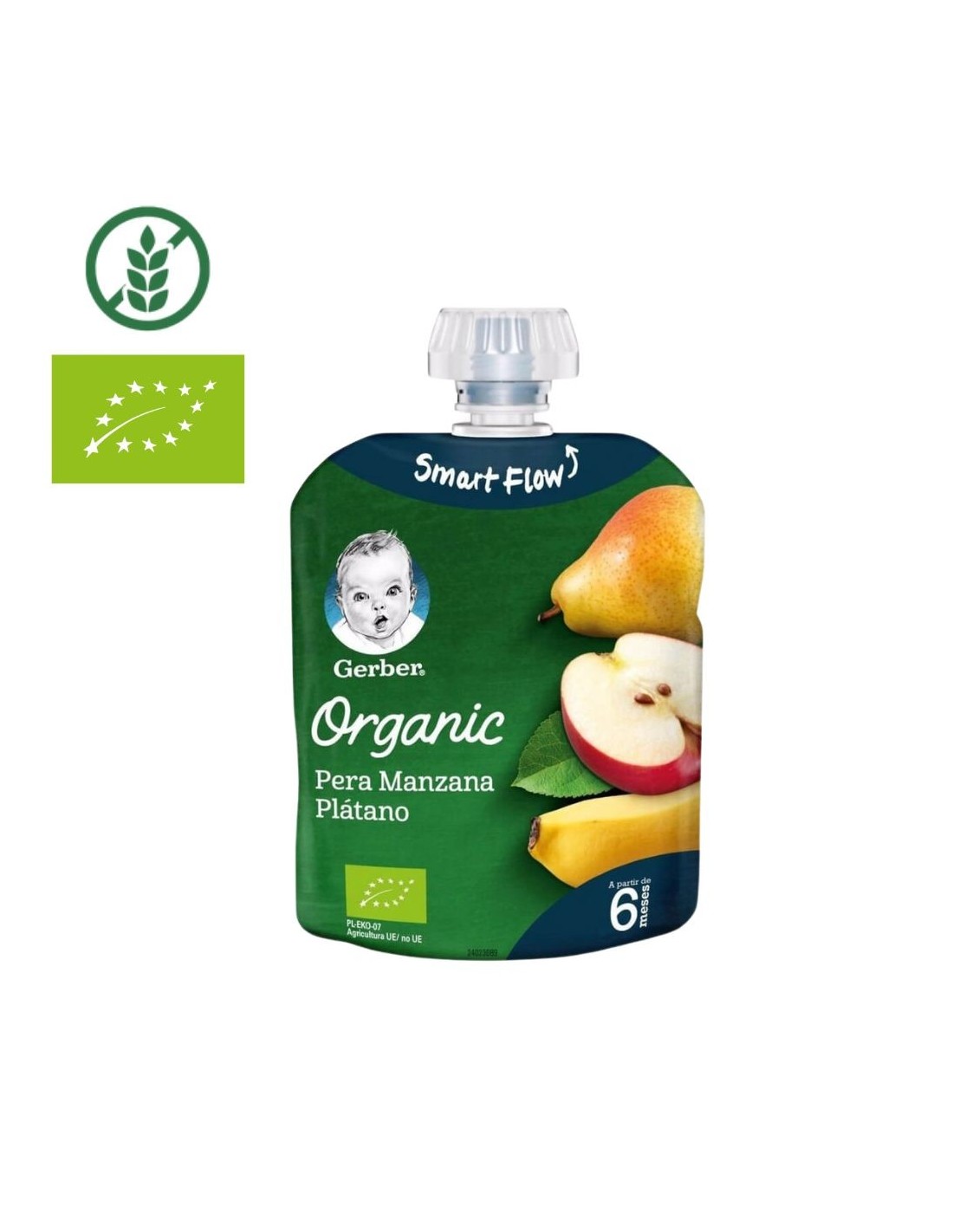 El Pouch Pera, Manzana y Plátano 90 g 4M+ Gerber combina tres frutas ecológicas —pera, manzana y plátano— en un delicioso puré natural y equilibrado, perfecto para bebés desde los 4 meses. Elaborado con frutas de agricultura ecológica certificada, cocinadas al vapor para conservar sus nutrientes, su sabor auténtico y su textura suave. Sin azúcares añadidos ni conservantes, este pouch ofrece una manera práctica y segura de introducir nuevos sabores en la alimentación complementaria. Su formato con tapón antigiro permite disfrutar del puré en casa o fuera de ella, garantizando higiene y comodidad para los padres.