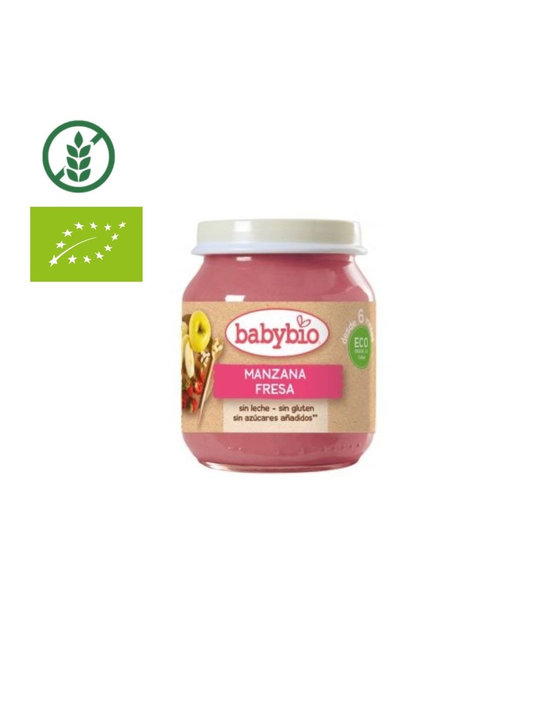 - Frutas principales: Manzana y fresa, una mezcla refrescante y nutritiva para el bebé.