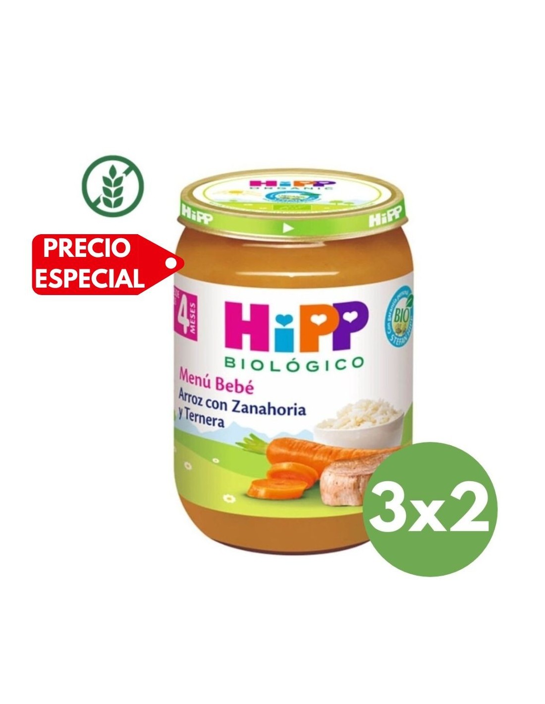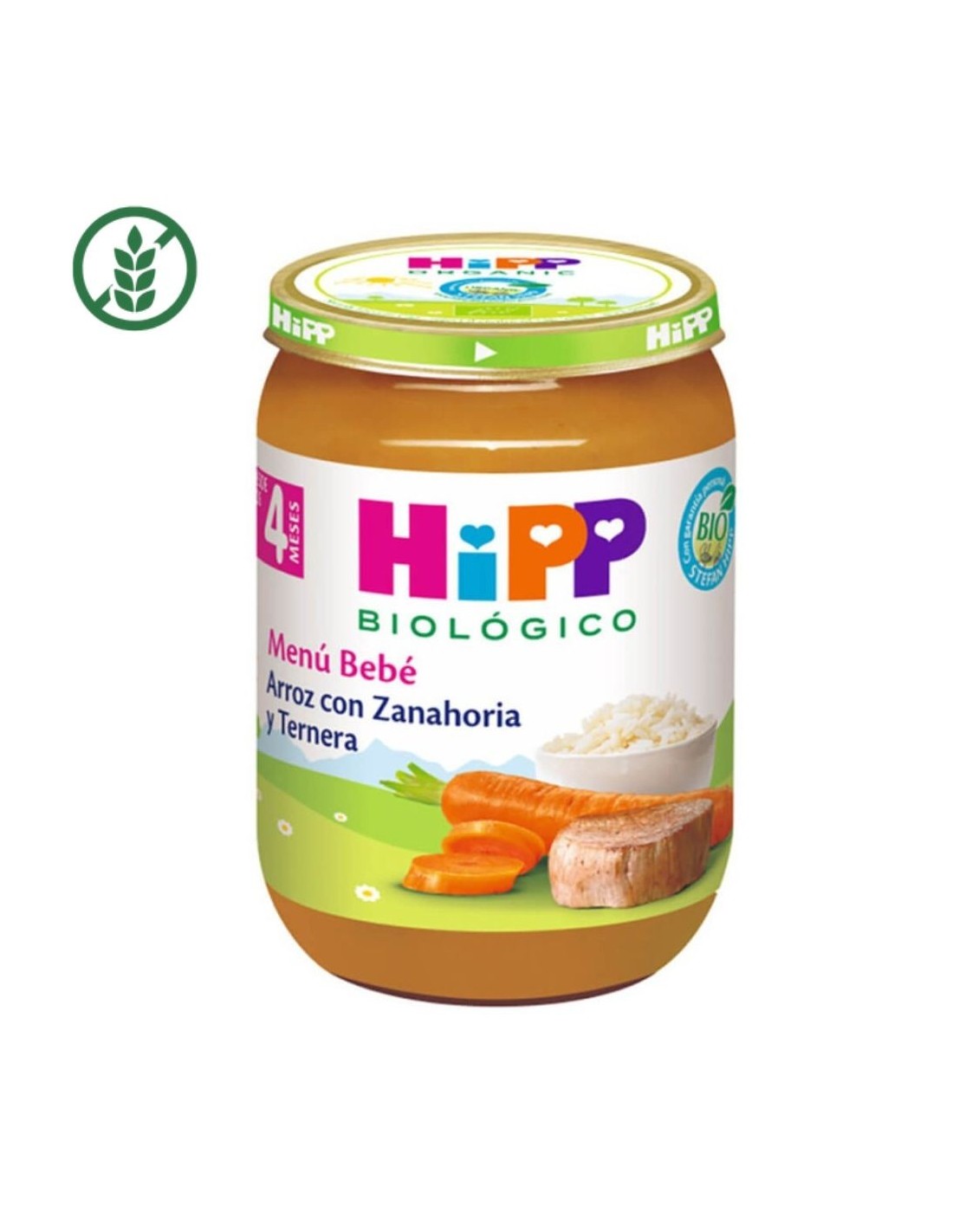 El Potito HiPP Bio Arroz con Zanahoria y Ternera 190 g 4M+ es una comida completa y equilibrada para bebés desde los 4 meses, perfecta para iniciar la alimentación complementaria. Su receta combina ternera ecológica, arroz y zanahorias frescas, cocinadas al vapor para conservar todos los nutrientes y el sabor natural de los alimentos.