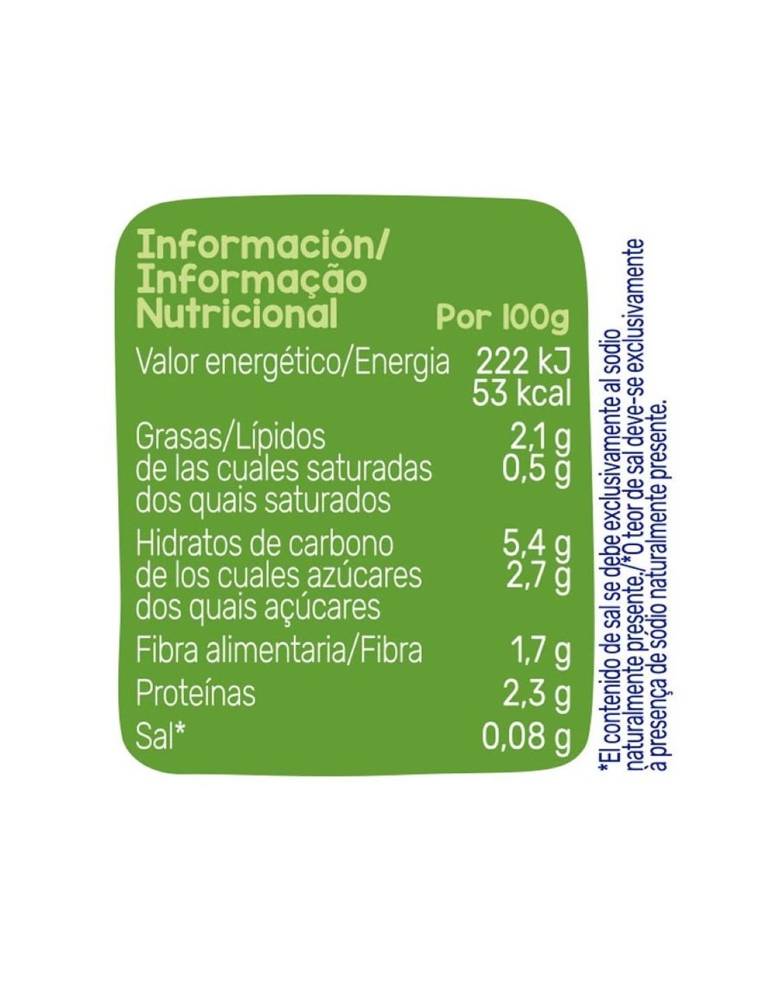 - Energía: 53 kcal