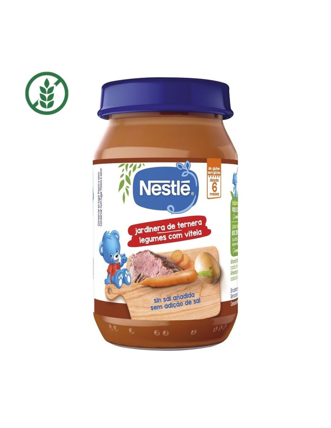 El Potito Jardinera de Ternera 190 g de Nestlé es una deliciosa receta elaborada con carne de ternera de alta calidad y verduras seleccionadas, cocinadas al vapor para conservar sus nutrientes y sabor natural. Su combinación de zanahoria, patata, guisante y cebolla junto con carne de ternera tierna ofrece una textura suave y homogénea, perfecta para los bebés que inician la alimentación complementaria a partir de los 6 meses.