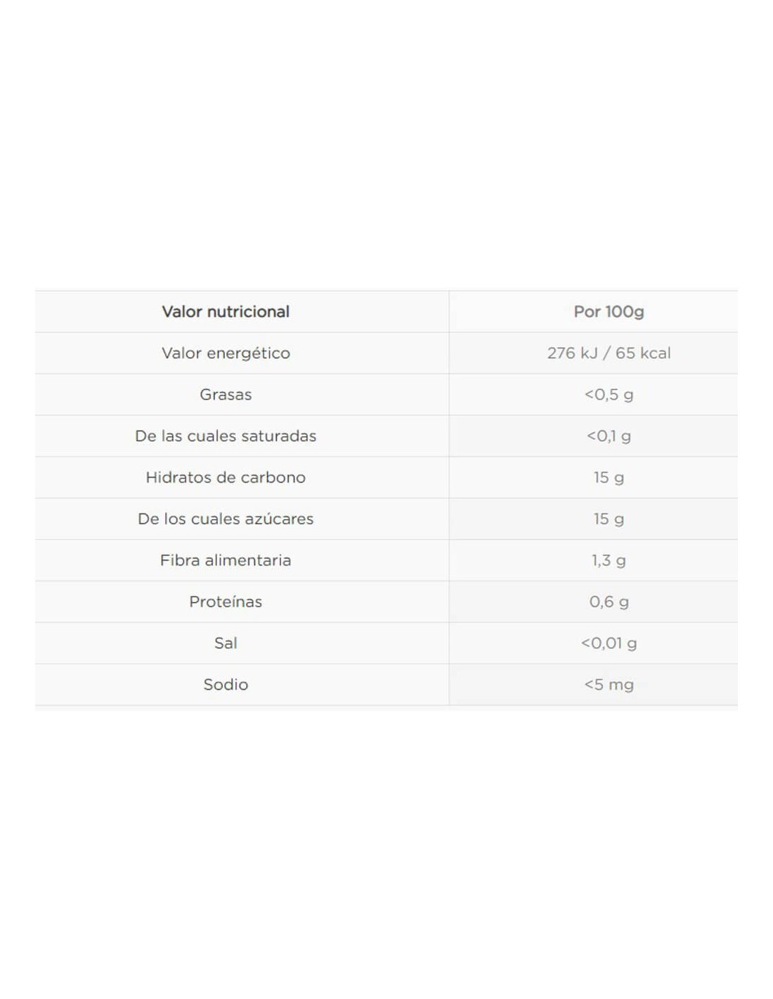 - 100 % fruta, sin azúcares añadidos ni aditivos.