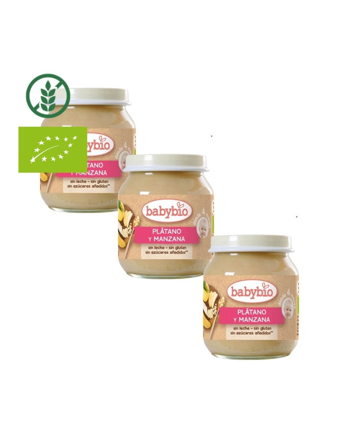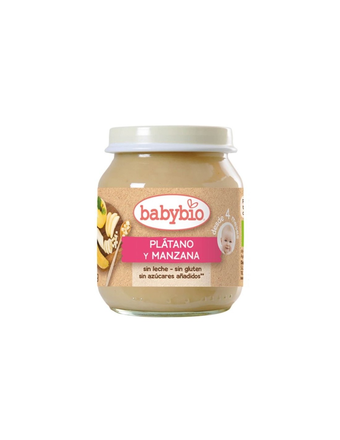 - Contenido: Puré 100 % fruta ecológica (manzana, plátano).
