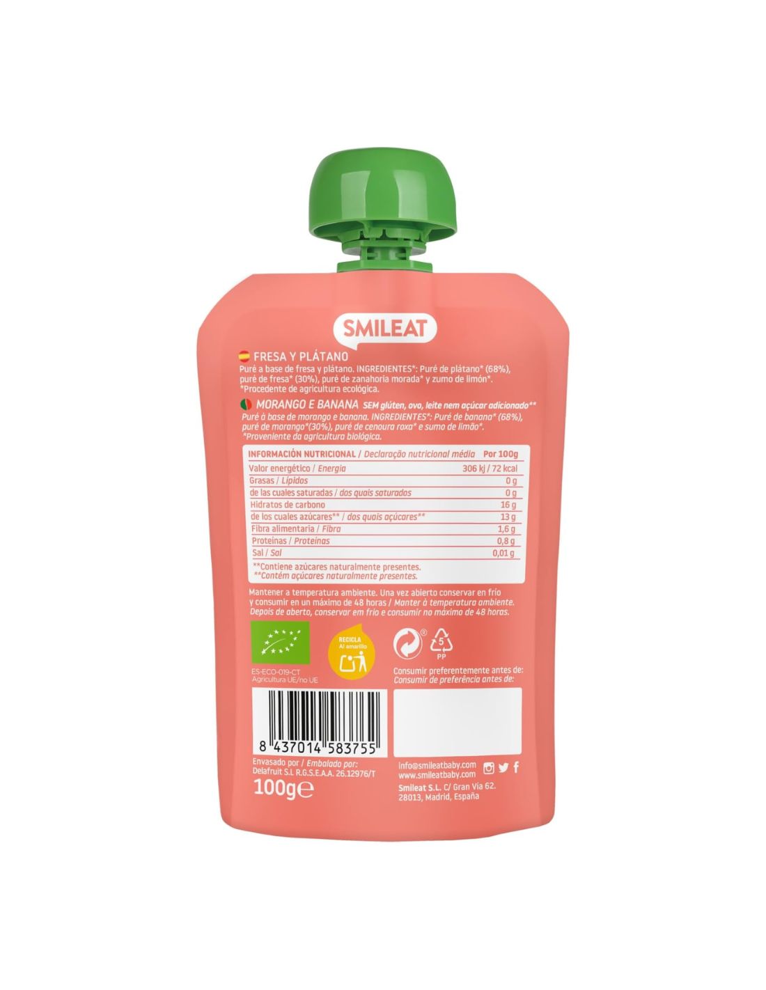 Pouch de Fresa y Platano 100gr eco | Smileat - Nappy.es