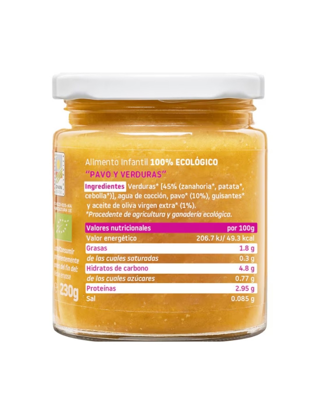 El Potito Pavo con Verduras Ecológico 230g de Smileat es una opción saludable y equilibrada para bebés a partir de 6 meses , ideal para la introducción de proteínas en su dieta. Elaborado con ingredientes 100% ecológicos , este tarrito combina la suavidad y alto valor nutritivo del pavo ecológico con una selección de verduras naturales , sin conservantes ni aditivos artificiales, asegurando un sabor auténtico y natural.
