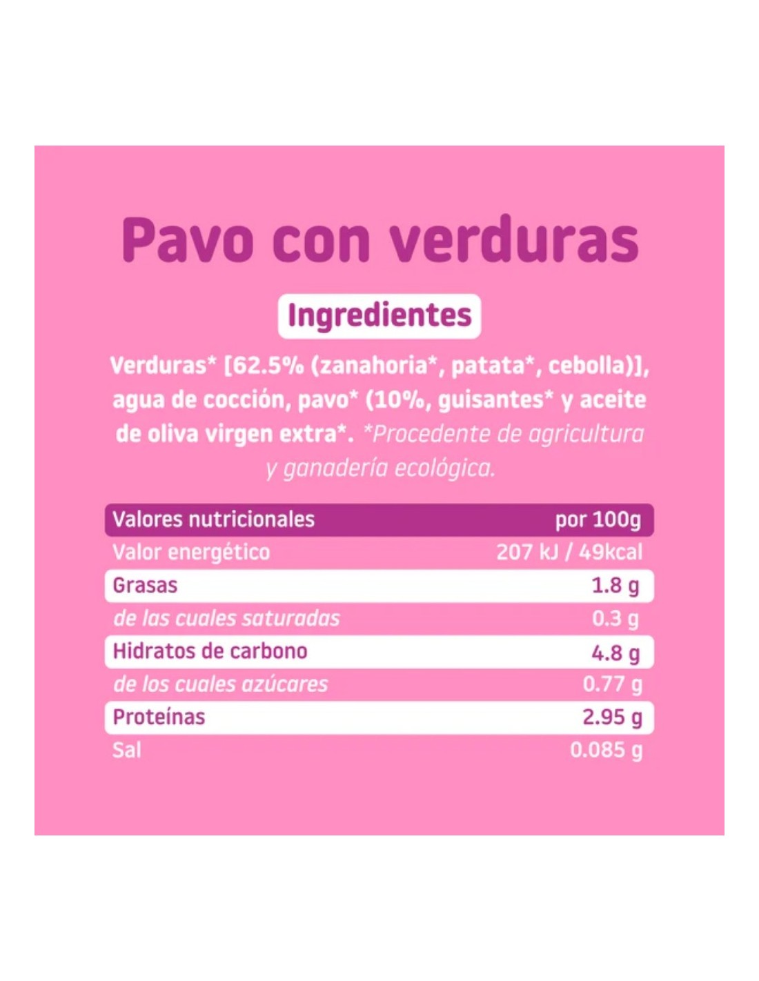 El Potito Pavo con Verduras Ecológico - Smileat está elaborado con pavo de crianza ecológica y verduras de agricultura sostenible , sin pesticidas ni productos químicos, garantizando la mejor calidad. Su combinación de ingredientes proporciona un equilibrio perfecto entre proteínas, vitaminas y minerales esenciales , apoyando el crecimiento saludable del bebé.