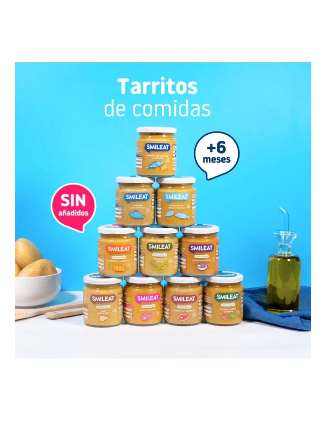 No contiene sal añadida, azúcares, conservantes ni colorantes , respetando el sabor natural de los alimentos. Además, su envase de vidrio reciclable refuerza el compromiso de Smileat con el medio ambiente y la sostenibilidad.
