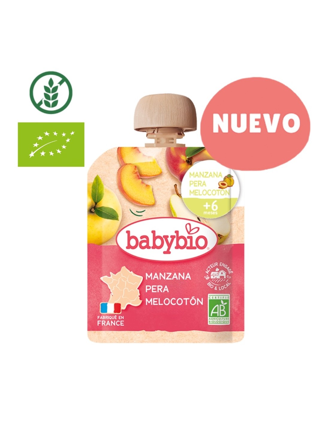 - Con manzana, pera y melocotón ecológicos.