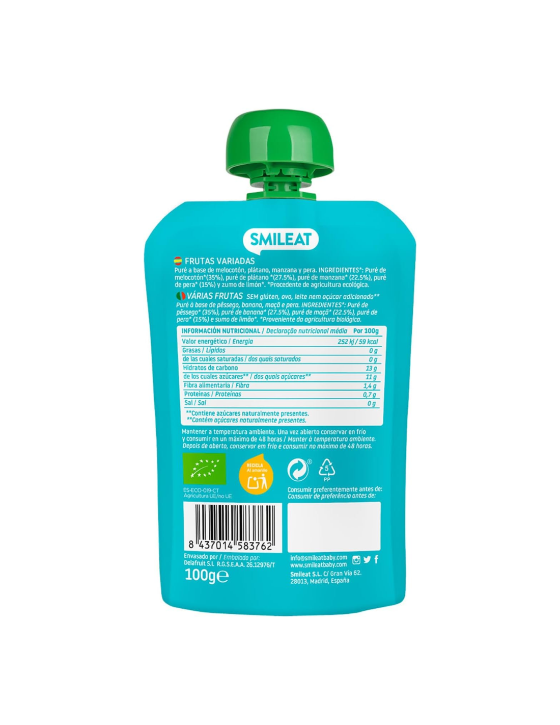 Elaborado con frutas 100% ecológicas , este sobre no contiene azúcares añadidos, conservantes ni colorantes artificiales , asegurando una experiencia natural y saludable. Su fórmula mantiene todas las propiedades nutricionales de la fruta , ofreciendo un aporte de vitaminas, minerales y fibra , esenciales para el crecimiento y desarrollo del bebé.