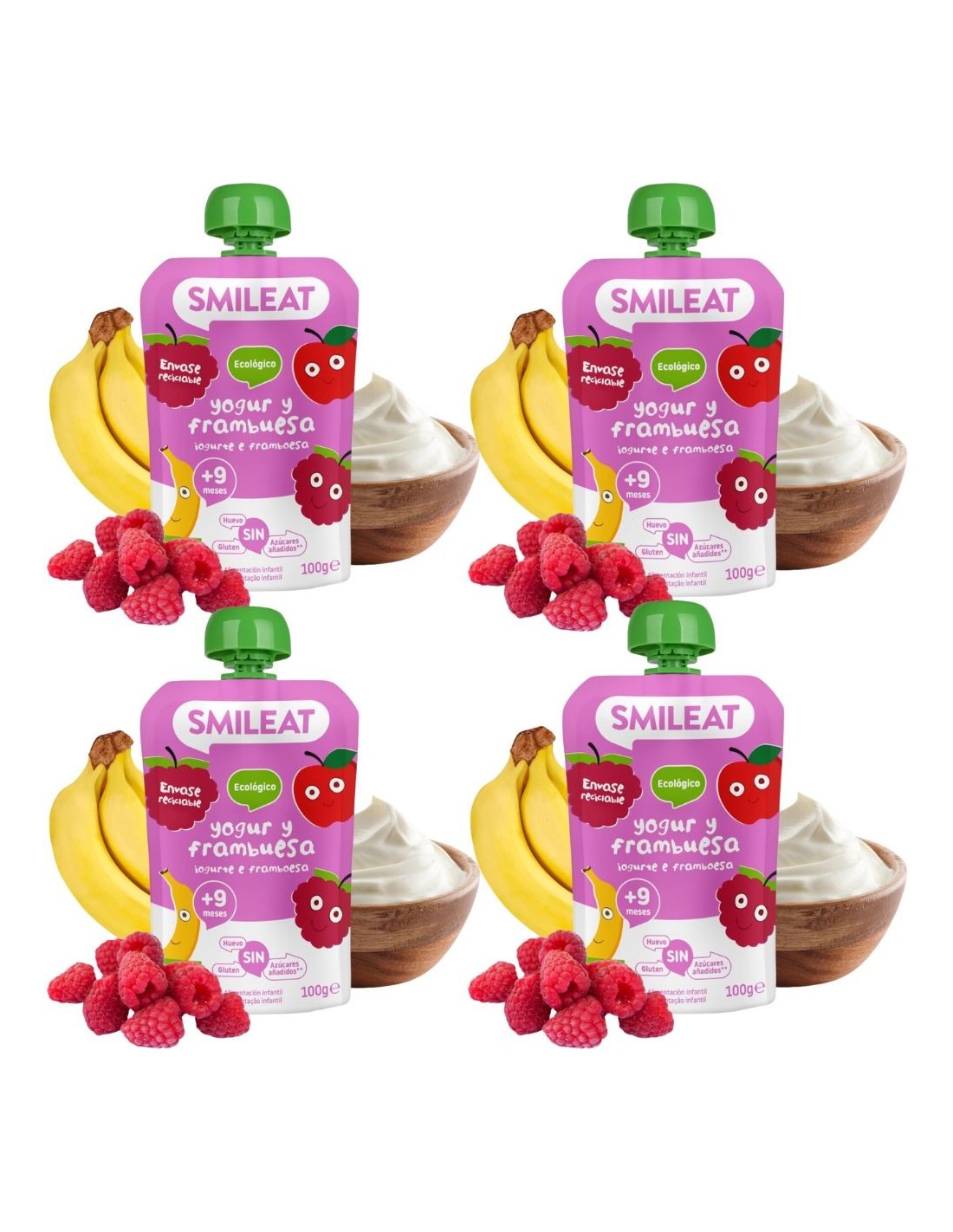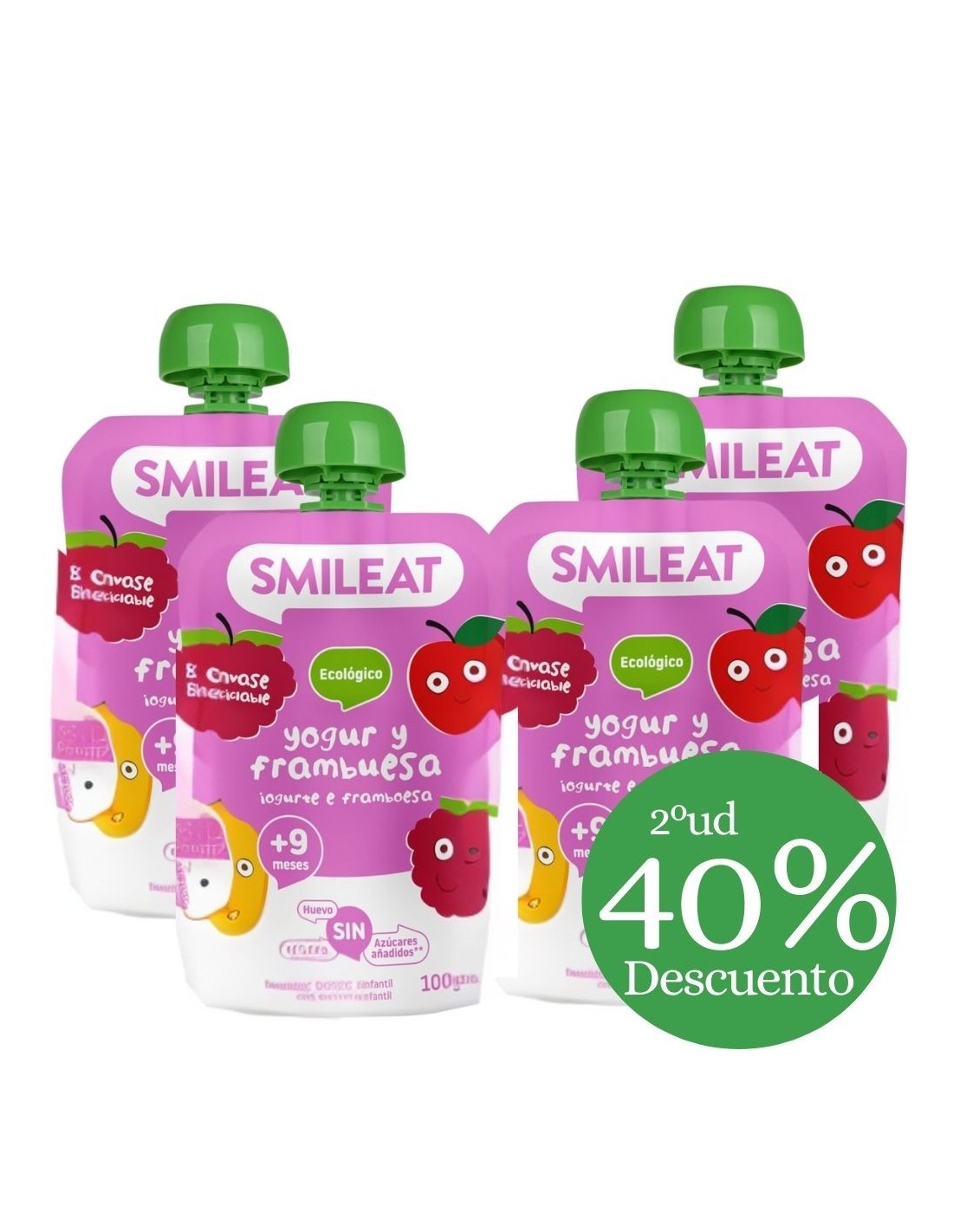 Este pouch está elaborado con frutas ecológicas y yogur natural, sin azúcares añadidos, colorantes ni conservantes artificiales. Su aporte de calcio y probióticos naturales favorece la salud digestiva y el desarrollo óseo del bebé, mientras que la frambuesa es rica en antioxidantes y vitamina C, fortaleciendo el sistema inmunológico.