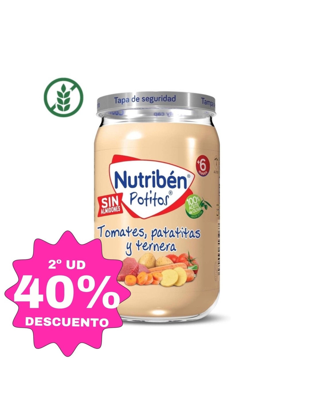 No, el potito Tomates, Patata y Ternera de Nutribén es sin gluten, huevo ni leche , lo que lo hace ideal para bebés con necesidades específicas o restricciones alimentarias.