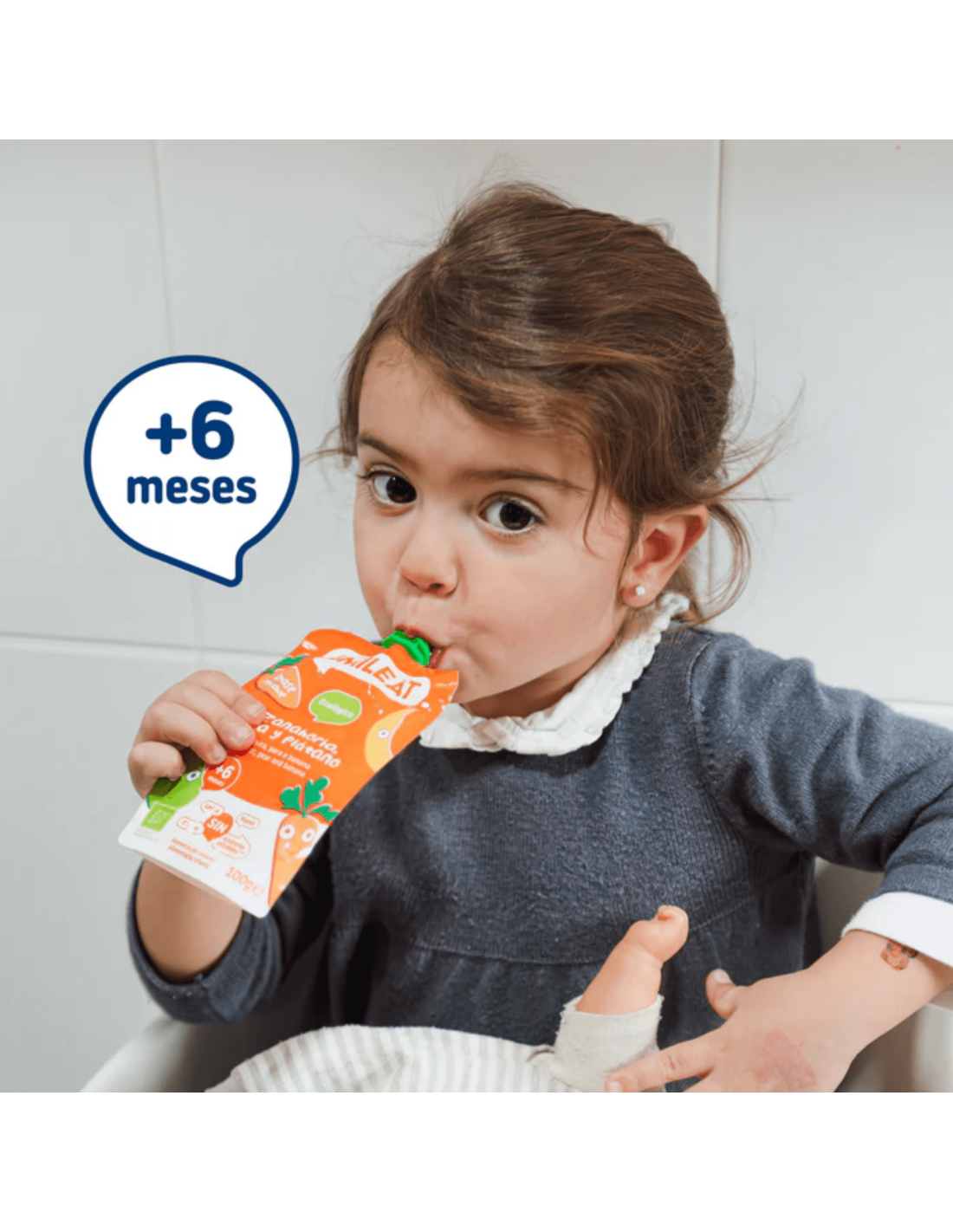 - Producto alimenticio infantil ecológico, conforme a la normativa europea sobre seguridad y etiquetado.