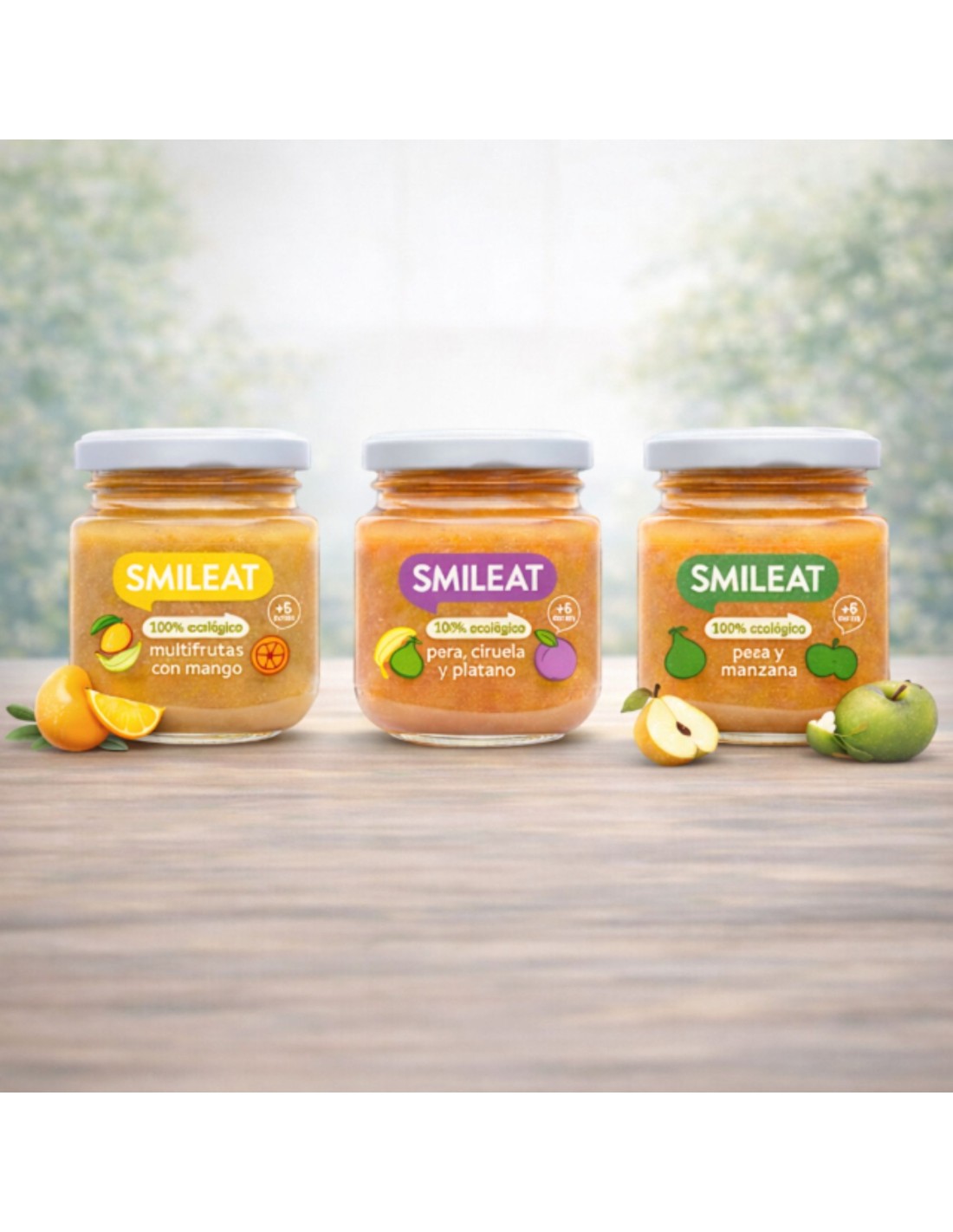 Tarritos Smileat: alimentos infantiles elaborados con ingredientes ecológicos, aptos para bebés a partir de 6 meses.