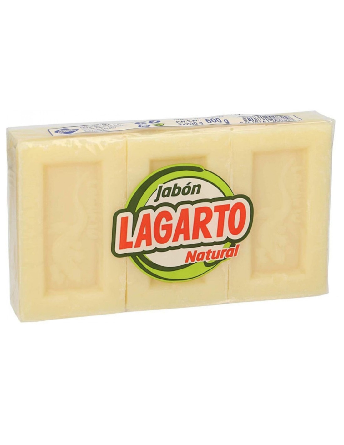 El Jabón Lagarto en pastilla 3x200 g es un producto tradicional de limpieza con más de 100 años de historia, conocido por su eficacia contra la suciedad y su composición natural.