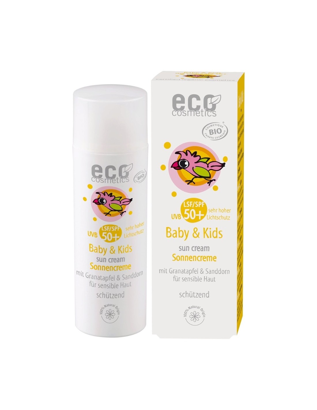 El Protector Solar Eco Cosmetics Bebés y Niños SPF 50 (50 ml) ofrece una protección muy alta frente a los rayos UVA y UVB, con filtros 100% minerales y sin nanopartículas. Especialmente formulado para pieles sensibles, es apto desde los primeros meses de vida y protege de forma inmediata tras la aplicación. Su fórmula contiene ingredientes naturales como el aceite de granada y el espino amarillo, que hidratan y nutren la piel del bebé, evitando la sequedad producida por la exposición solar. Además, es resistente al agua y muy fácil de extender, sin dejar residuos pegajosos.