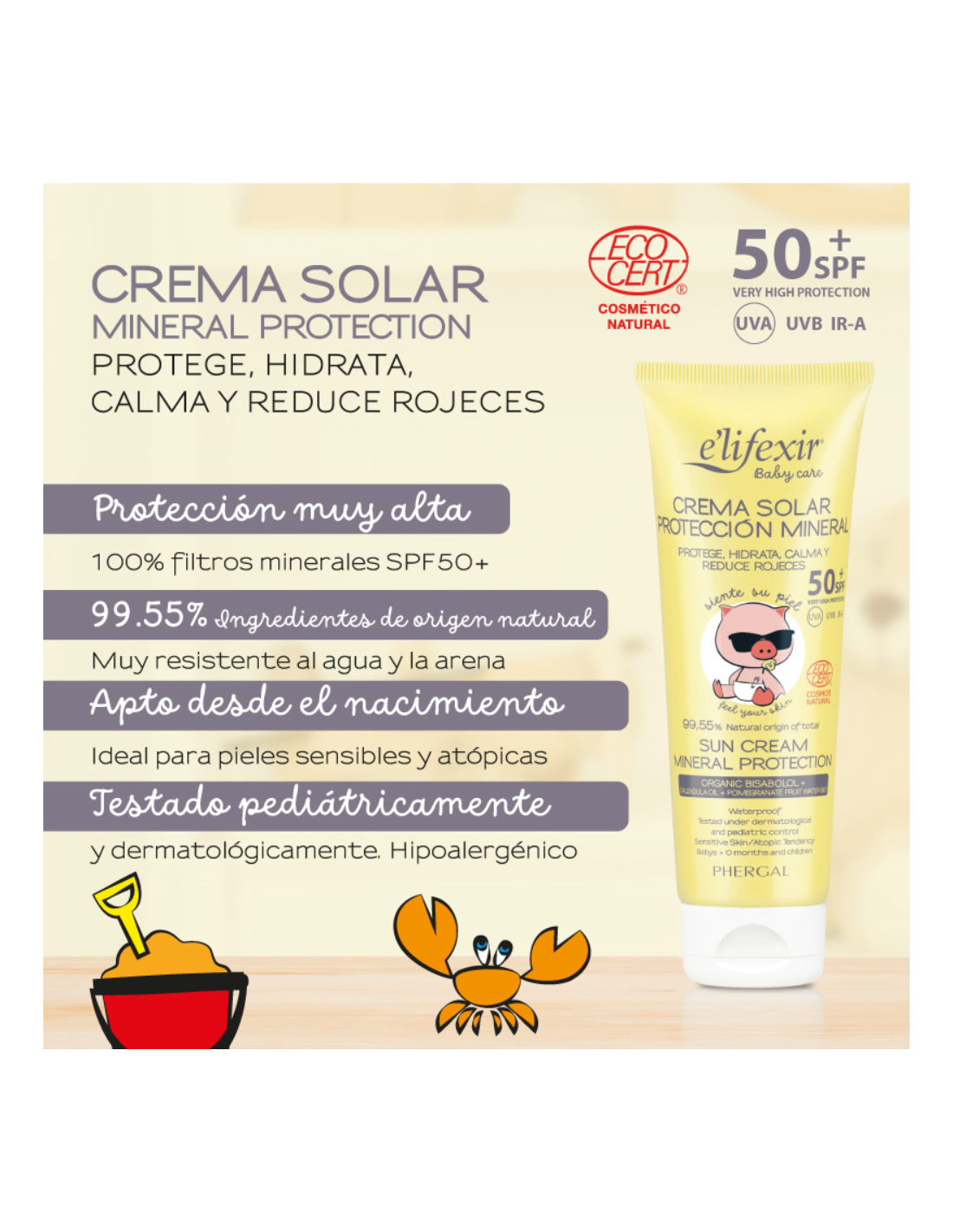 Protección muy alta: SPF50 frente a rayos UVA y UVB. Filtros 100% minerales: Formulación con óxido de zinc y dióxido de titanio, segura para pieles sensibles. Apta para bebés y adultos: Testada dermatológicamente, indicada para piel sensible y atópica. Resistente al agua: Permite disfrutar de actividades al aire libre con protección duradera. Textura ligera: Se extiende fácilmente y deja un acabado natural. Fórmula eco-friendly: Respetuosa con ecosistemas acuáticos, sin filtros químicos dañinos para la vida marina.