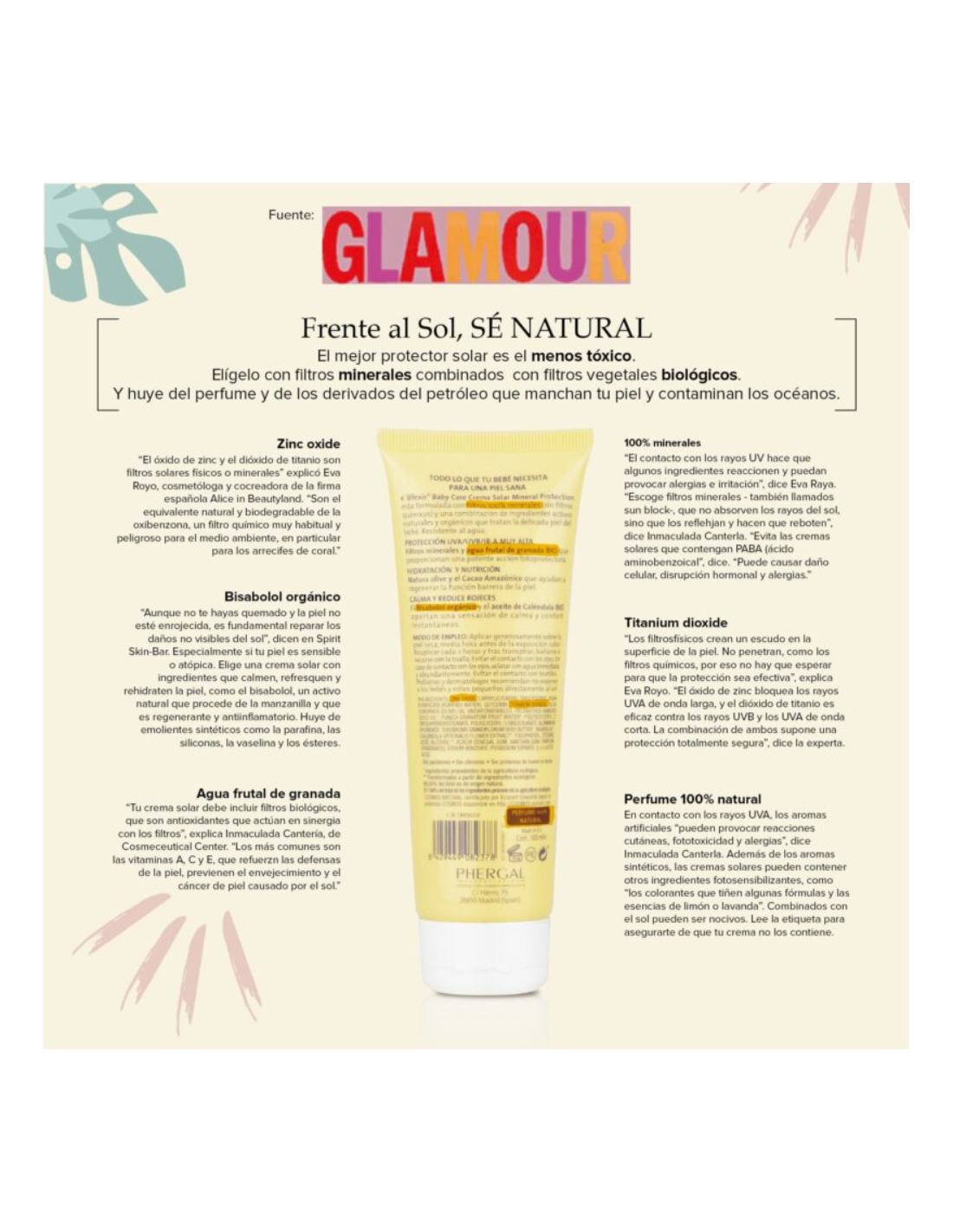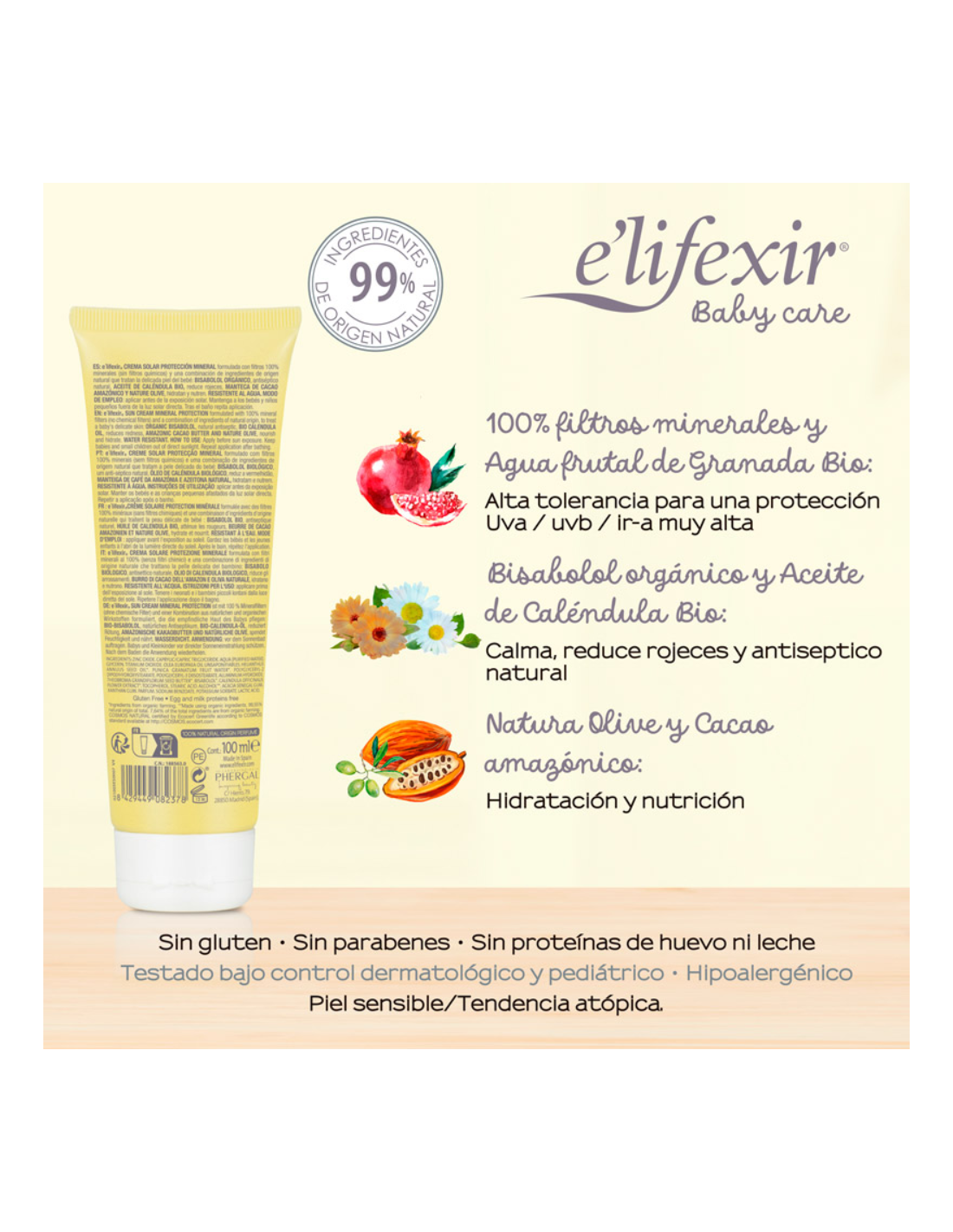 No contiene perfumes añadidos ni filtros químicos que puedan provocar reacciones en piel sensible.