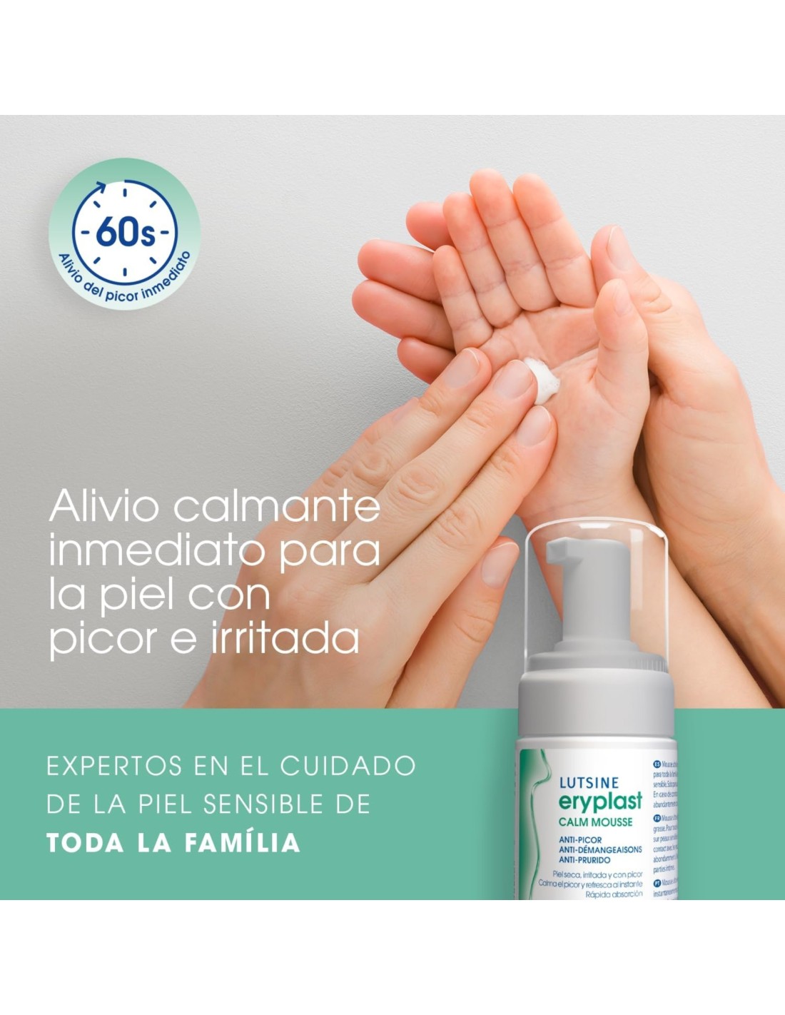 Efecto calmante inmediato: Reduce la sensación de picor y ardor en la piel. Acción refrescante: Su textura en espuma proporciona alivio instantáneo. Fórmula suave: Sin perfume ni parabenos, apta para piel sensible e infantil. Uso versátil: Ideal para piel seca, irritada, eccemas o molestias cutáneas. Aplicación higiénica: Envase en formato mousse de 100 ml, fácil de usar. Dermatológicamente testado: Apto para bebés, niños y adultos.
