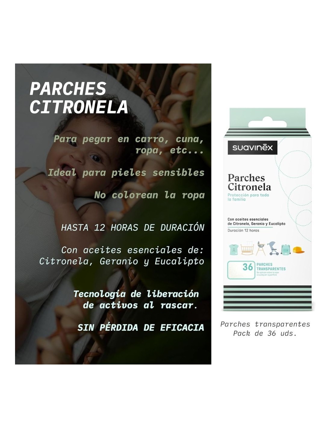 Los Parches de Citronela Antimosquitos Suavinex 36 uds son una solución práctica y eficaz para proteger a bebés y niños frente a las picaduras de mosquitos.