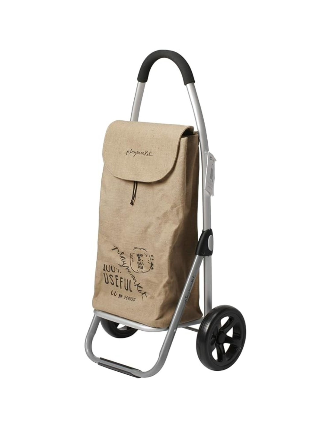 El Go Two Saco Marrón de PlayMarket combina diseño moderno y practicidad en un carro de compra robusto, plegable y de alta capacidad.
