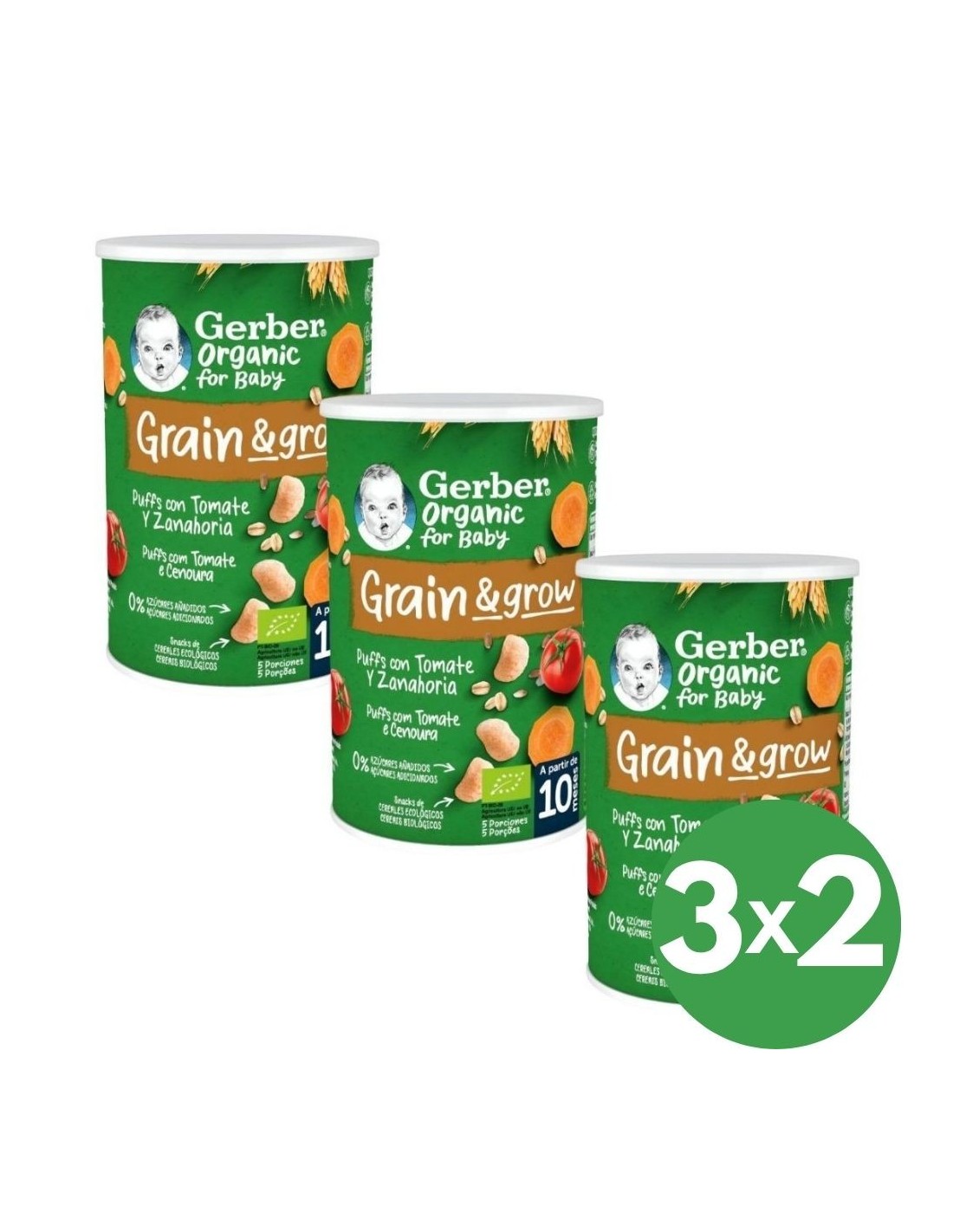 Elaborado con ingredientes 100 % ecológicos, combina cereales integrales con el sabor natural del tomate, aportando un toque suave y delicioso sin necesidad de azúcares añadidos. Un snack ideal para entre comidas, en casa o durante los paseos, con la garantía de calidad de Gerber, marca experta en nutrición infantil.