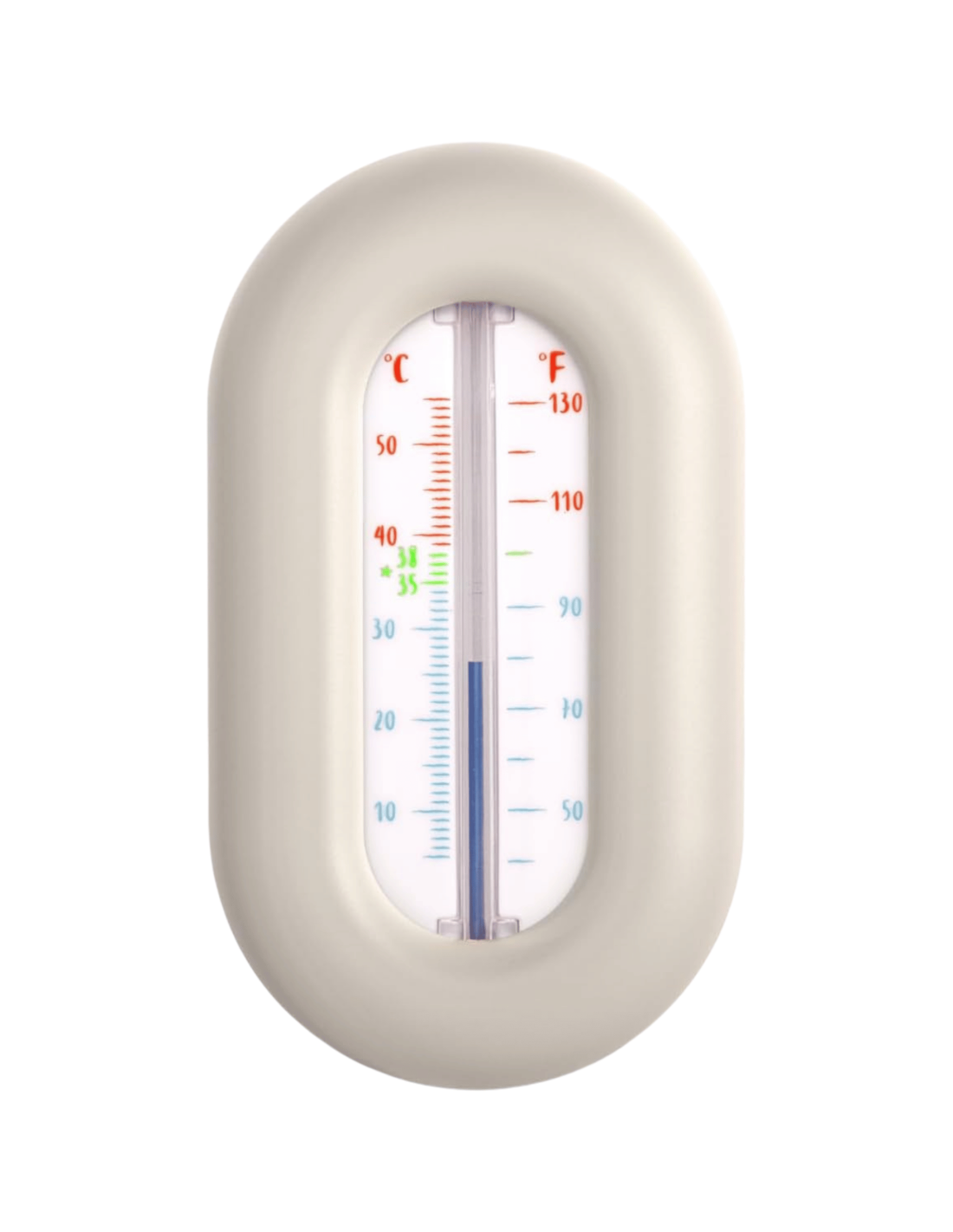 La temperatura recomendada para el baño del bebé es de aproximadamente 37 ºC / 98,5 ºF. El termómetro es totalmente seguro, ya que no contiene mercurio ni sustancias tóxicas y funciona sin pilas, lo que lo hace resistente, duradero y respetuoso con el uso infantil. Su diseño Wild&Free en color gris, discreto y moderno, lo convierte en un complemento ideal para canastillas, regalos para recién nacidos o para llevar en la bolsa de maternidad.