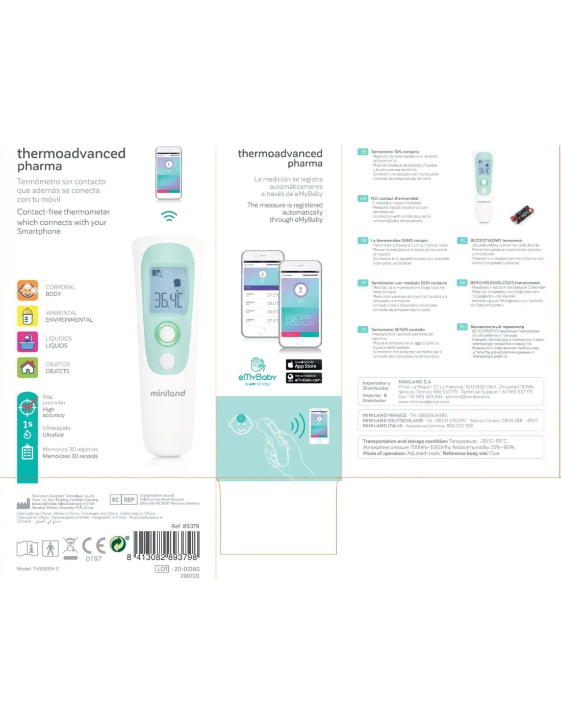 El Termómetro sin contacto Thermo Advanced Pharma Miniland combina tecnología infrarroja de última generación con precisión profesional para ofrecer mediciones rápidas, seguras y fiables.
