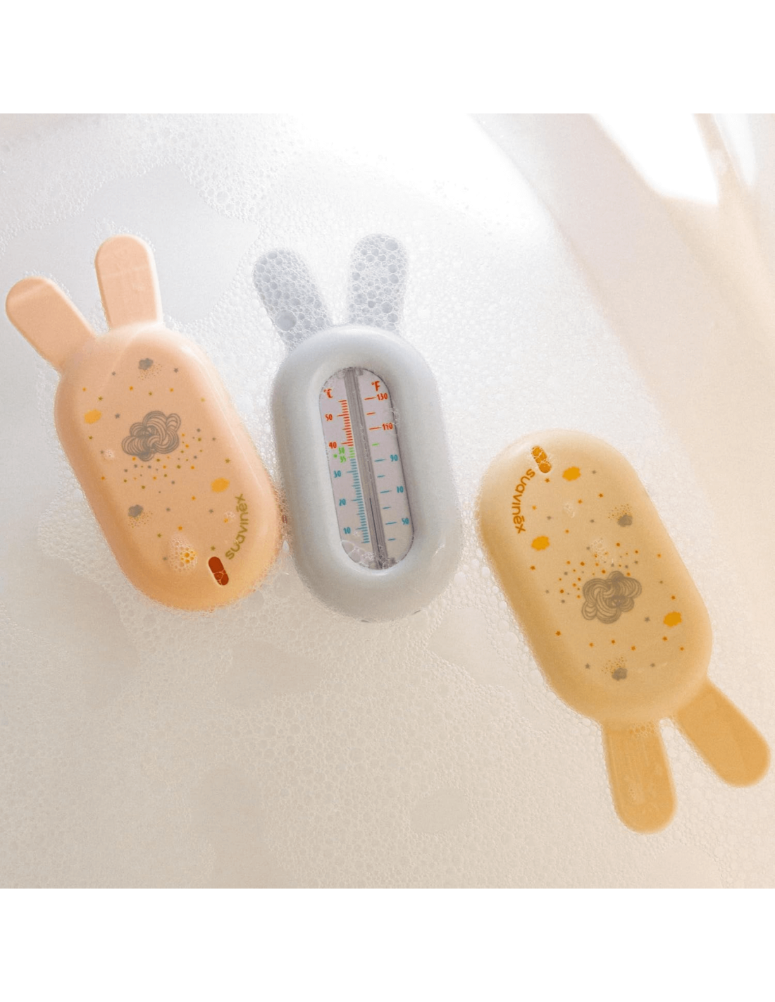 El termómetro de bañera para bebé Suavinex es un accesorio imprescindible para garantizar baños seguros y agradables desde el nacimiento. Libre de mercurio y sustancias tóxicas, es totalmente seguro y resistente, diseñado especialmente para la delicada piel de los bebés. Cuenta con una escala de colores que permite comprobar de un vistazo si el agua está a la temperatura adecuada: