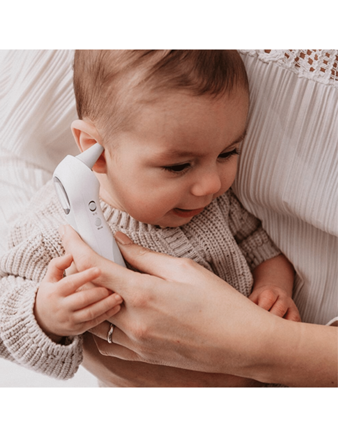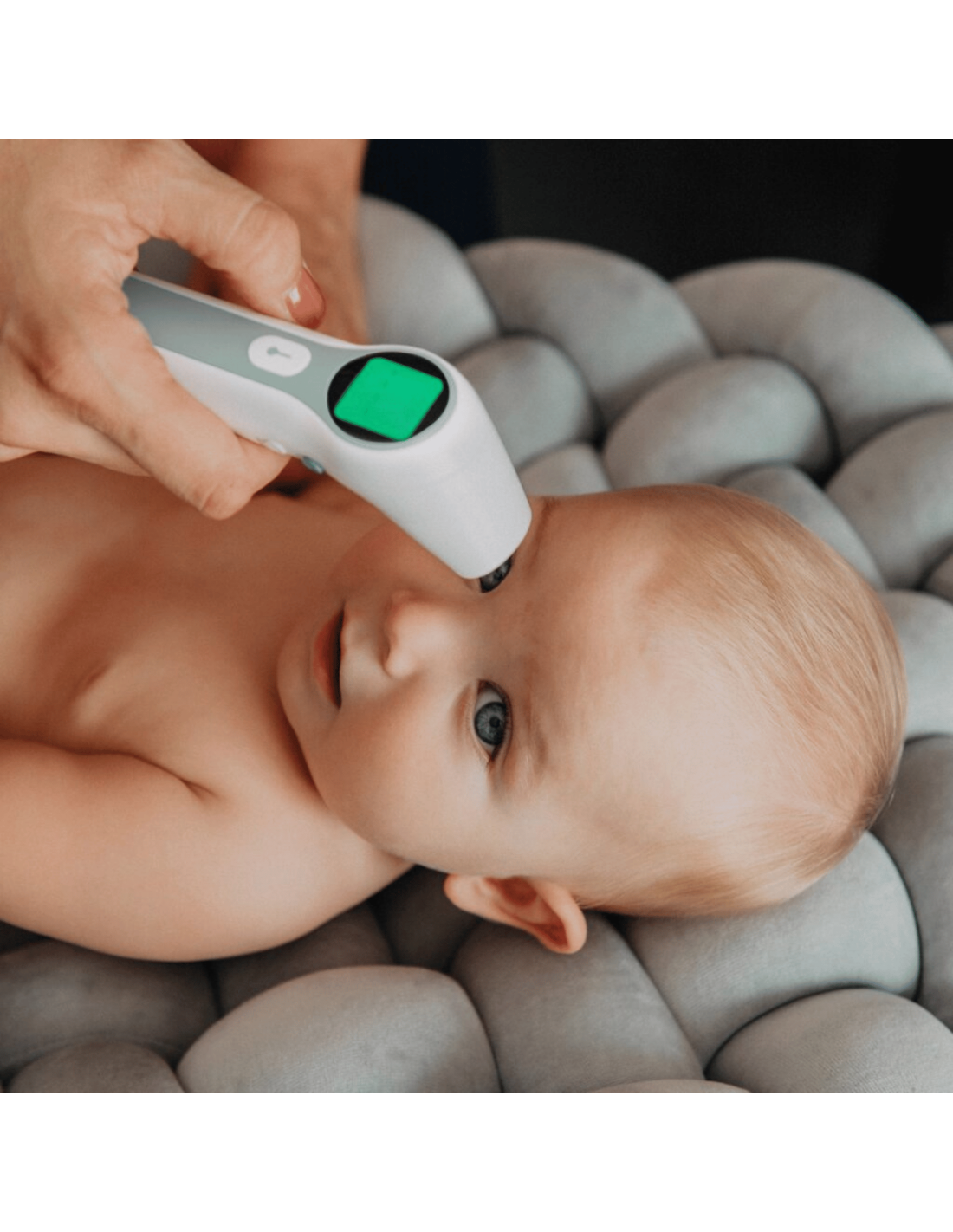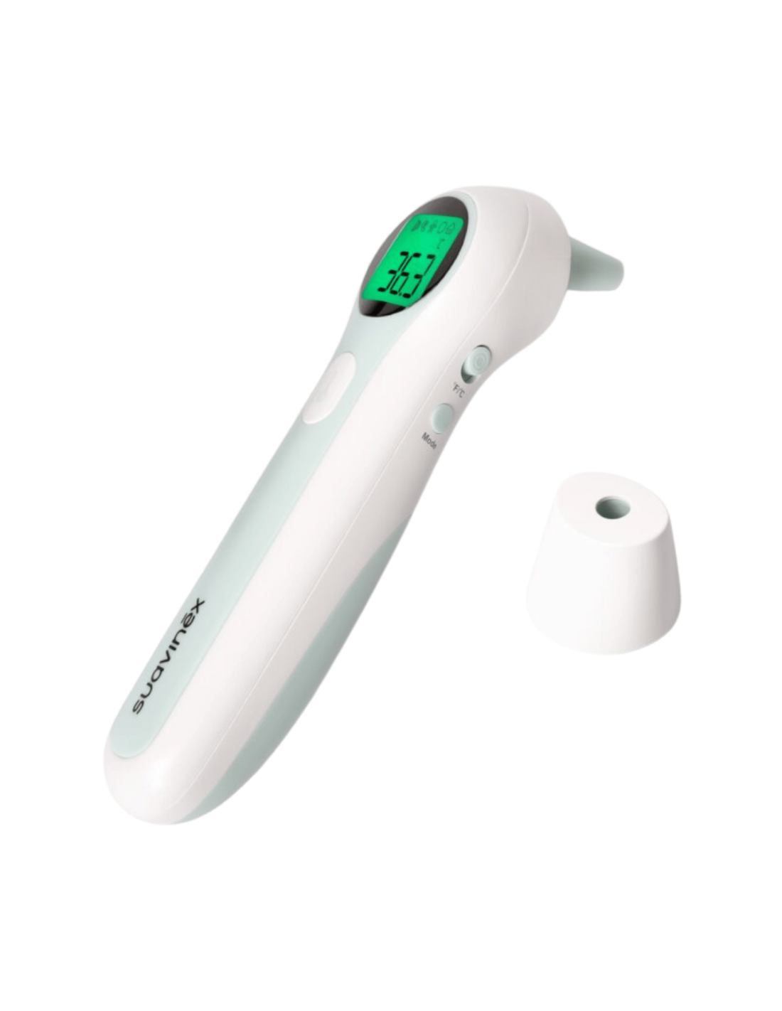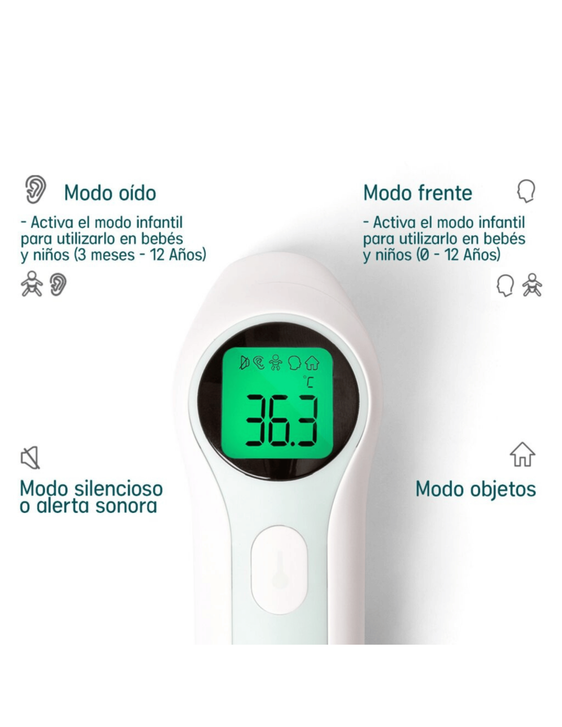 El Termómetro Infrarrojos con Bolsa de Transporte y Pilas de Suavinex permite medir la temperatura corporal de forma rápida, higiénica y sin contacto, lo que lo convierte en una opción ideal para bebés y niños pequeños. Gracias a su tecnología de infrarrojos, realiza la medición en pocos segundos simplemente acercándolo a la frente, evitando molestias y facilitando el control de la fiebre incluso mientras el bebé duerme.
