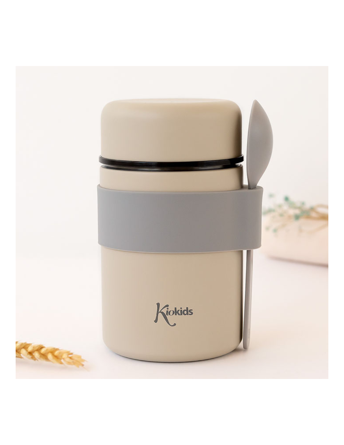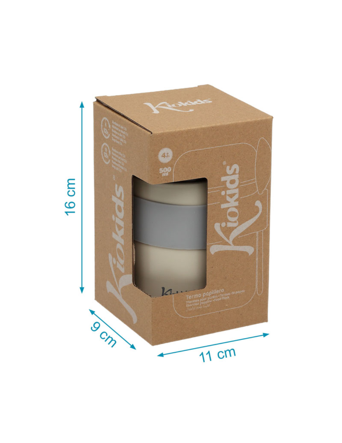El Termo papillero de acero inoxidable 500 ml con cuchara Kiokids es ideal para mantener la comida del bebé caliente o fría durante horas, tanto en casa como en salidas y viajes. Su diseño práctico incluye cuchara plegable integrada en la tapa y una boca ancha que facilita llenar, servir y limpiar.