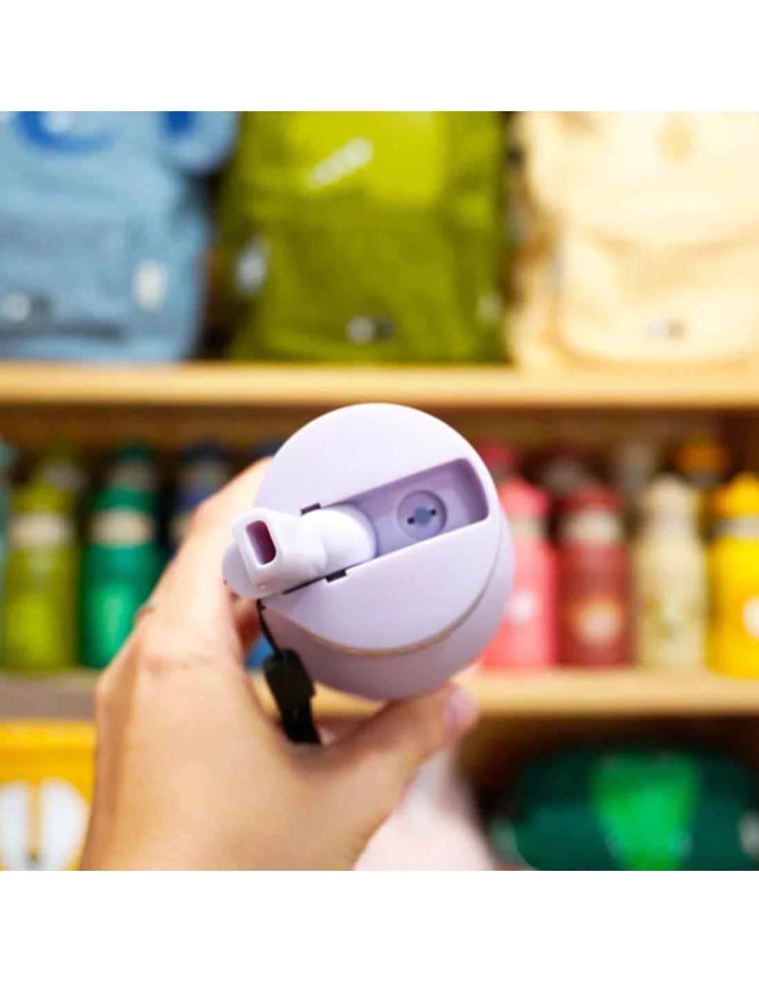 El tapón de acero inoxidable con anilla de silicona facilita su transporte y evita fugas, siendo ideal para el cole, excursiones o actividades diarias. El diseño de Ratón Lila es alegre, colorido y estimula la autonomía infantil, animando a los peques a hidratarse solos.