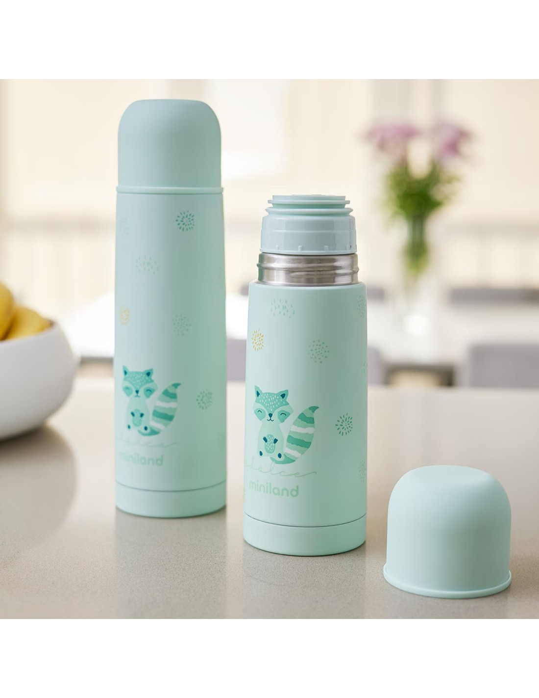 El Termo para líquidos verde 350 ml de Miniland es la opción más práctica y segura para conservar la temperatura de las bebidas de tu bebé fuera de casa. Fabricado en acero inoxidable de alta calidad, mantiene líquidos fríos o calientes hasta 12 horas. Su diseño compacto y ligero facilita el transporte, siendo perfecto para llevar en el bolso maternal o mochila de paseo. El acabado en color blanco aporta un estilo moderno y minimalista, combinando elegancia y funcionalidad en cada salida.