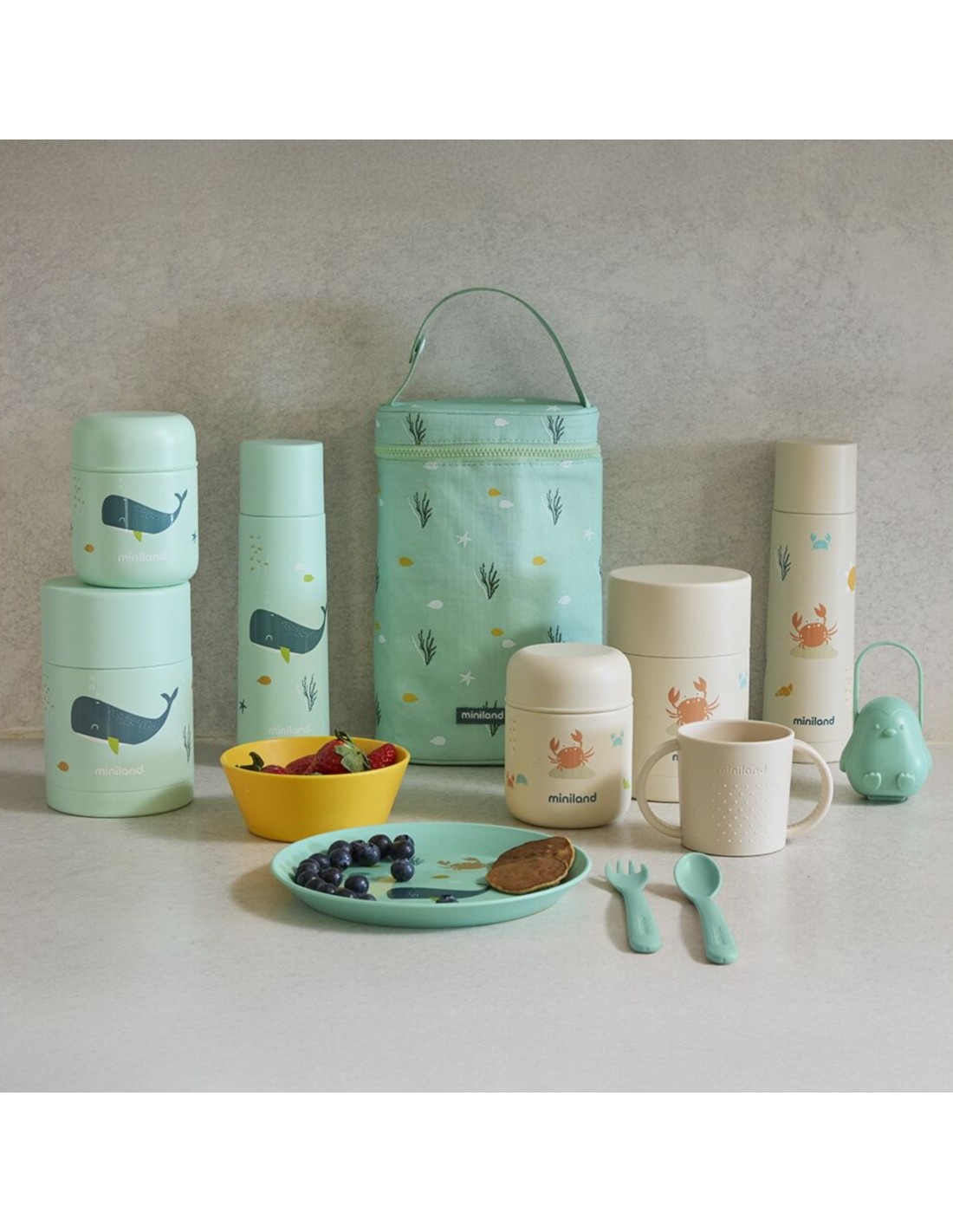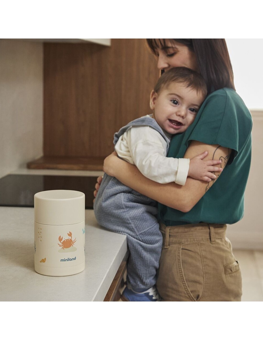 Los termos para alimentos sólidos y papillas de Miniland son el complemento ideal para conservar las comidas de tu bebé a la temperatura perfecta. Gracias a su diseño de doble pared de acero inoxidable y una exclusiva capa de cobre, ofrecen una conservación térmica eficiente, manteniendo el calor o el frío durante varias horas.