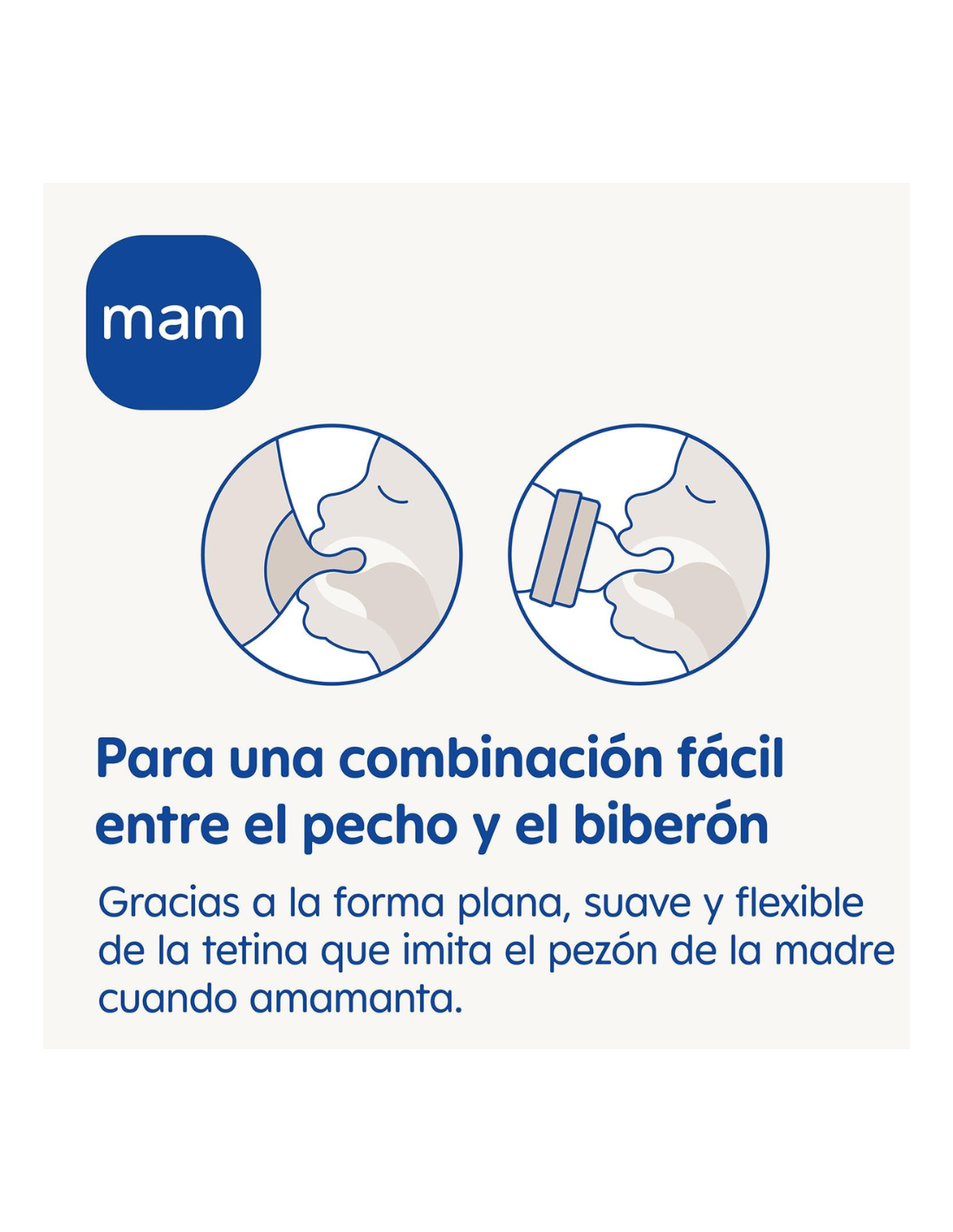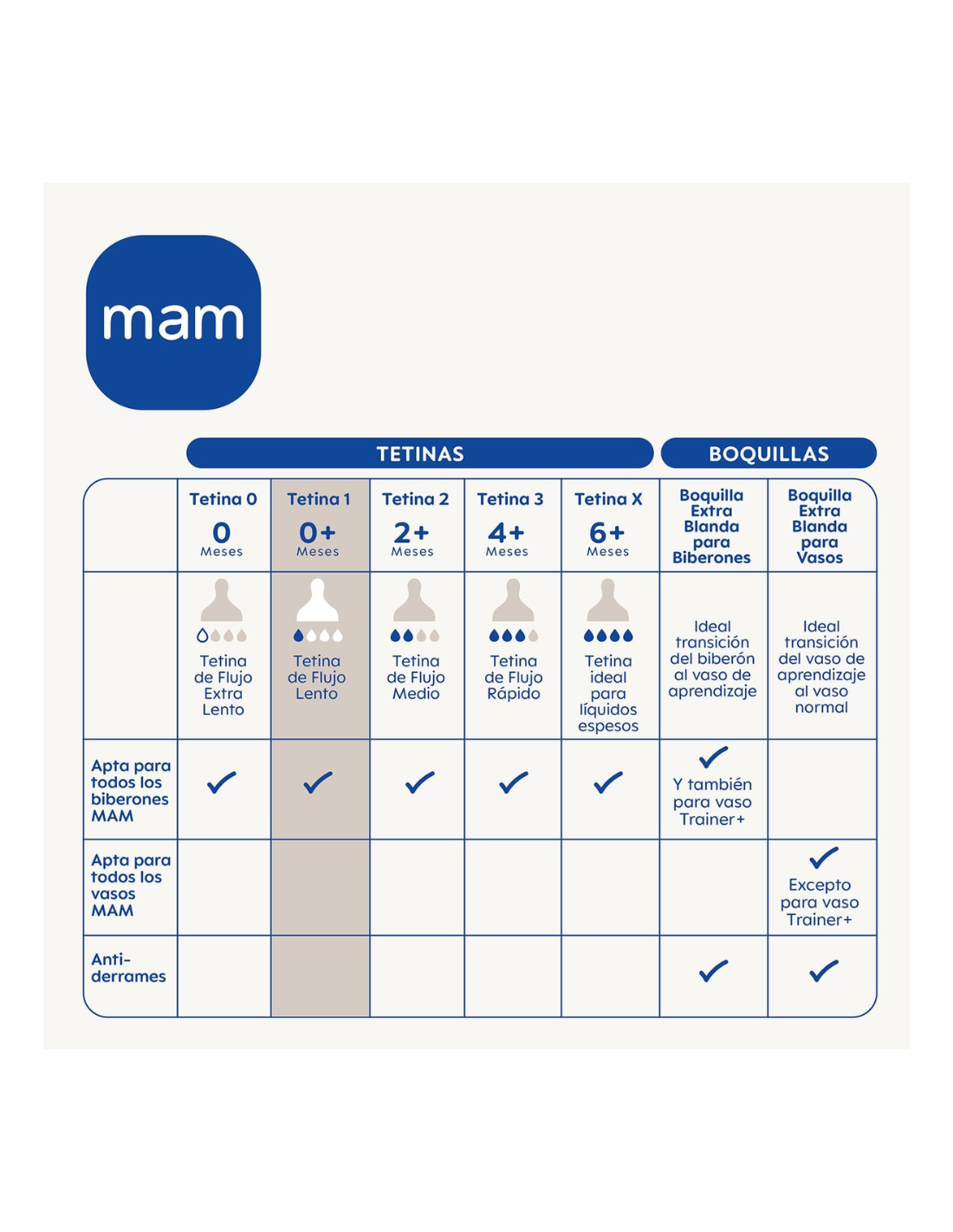 Desde el nacimiento (0 meses +), ideal para leche materna o fórmula líquida. - ¿Se adapta a todos los biberones MAM?