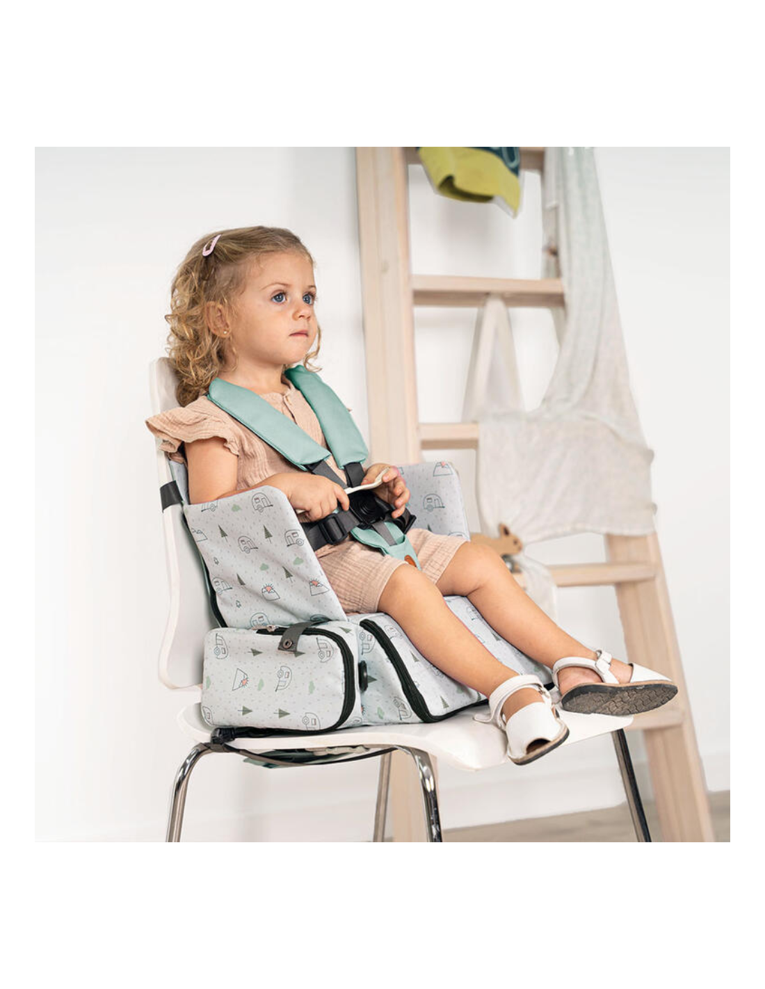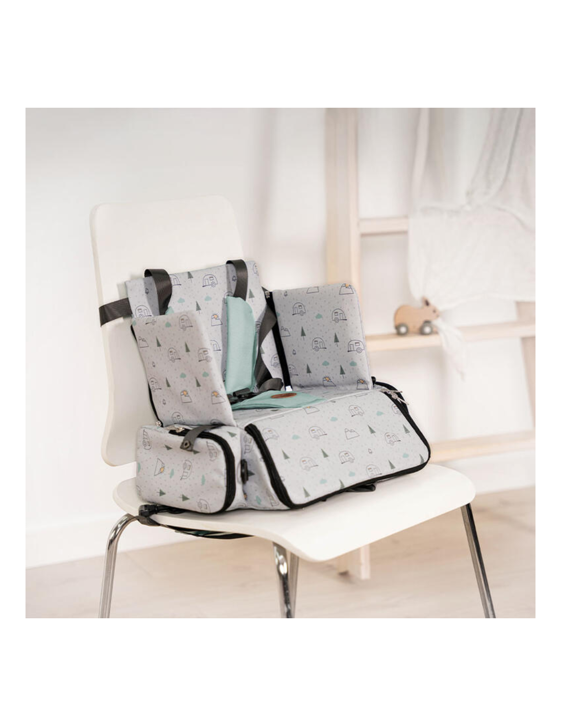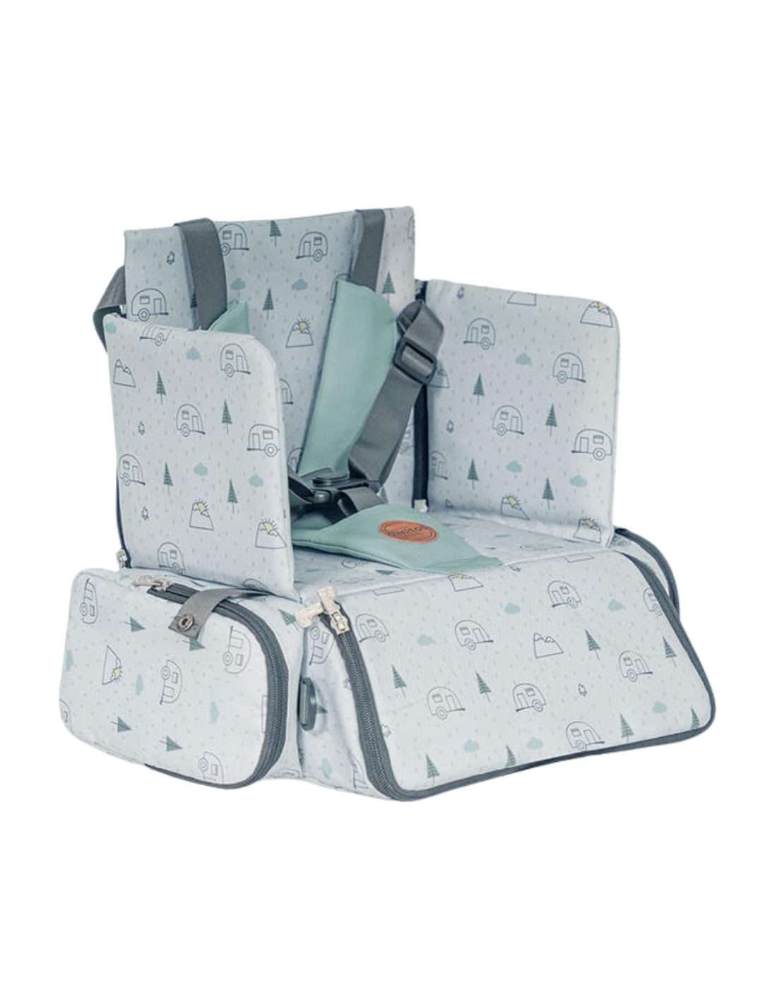 - Fijación segura al asiento de adulto mediante correas ajustables.