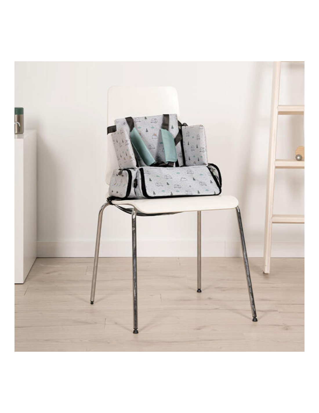 - Colocar el asiento sobre una silla estable de adulto.